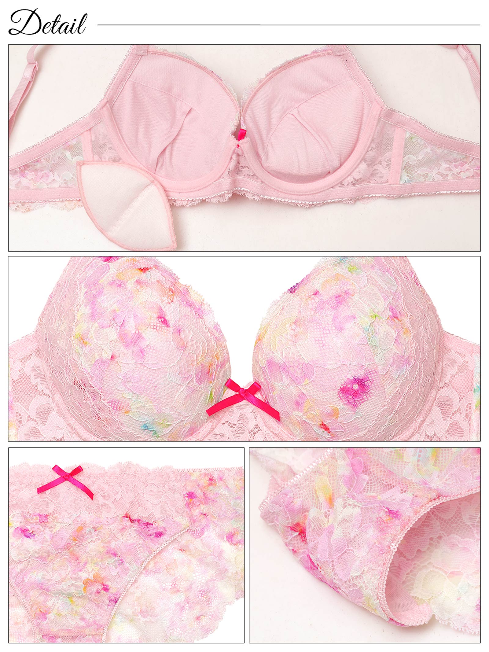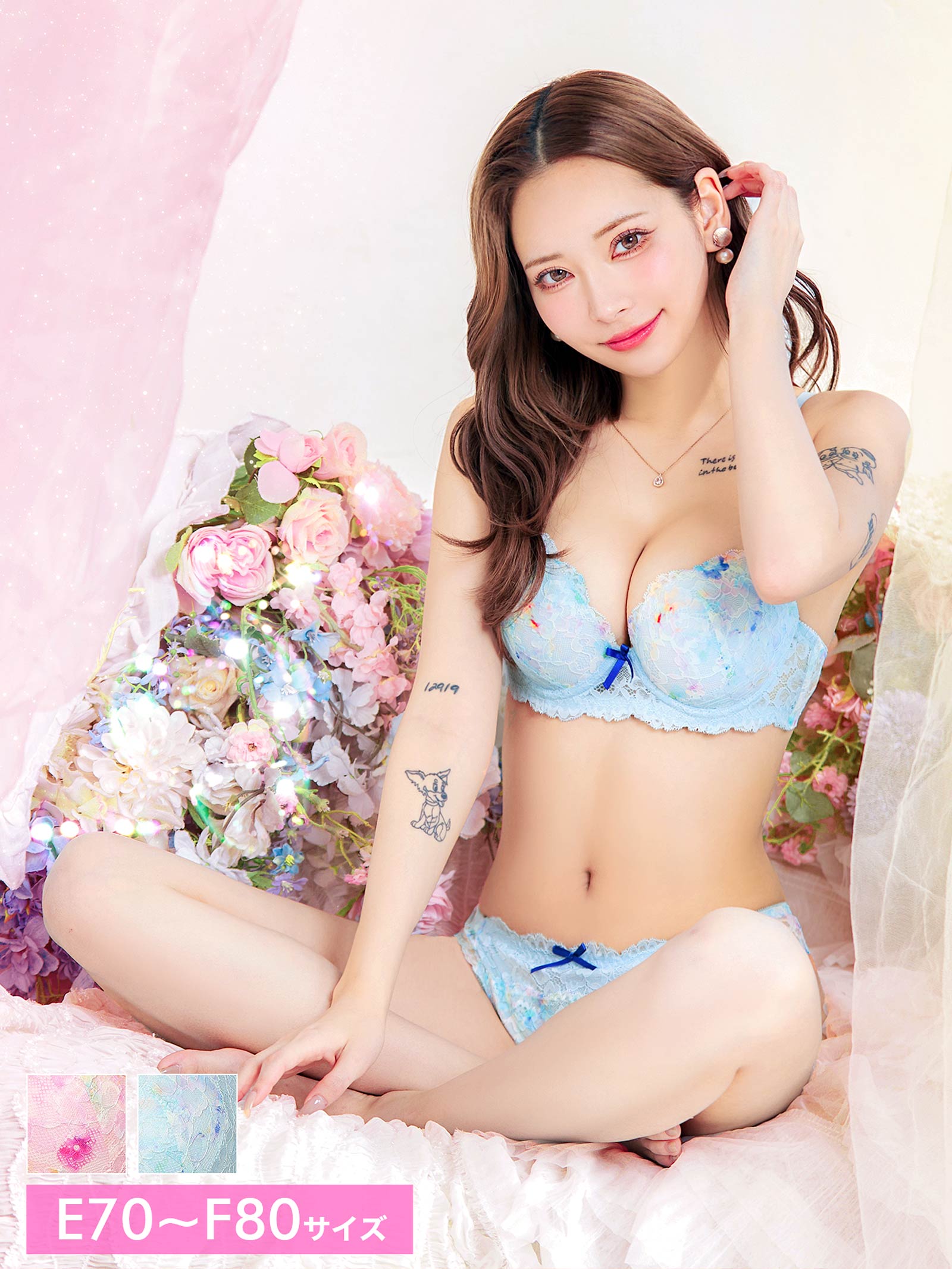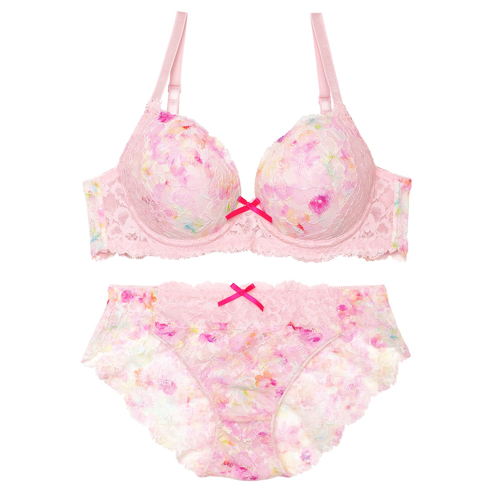【EFサイズ】フレッシュスウィートフラワーブラジャー&バック透けフルバックショーツ
