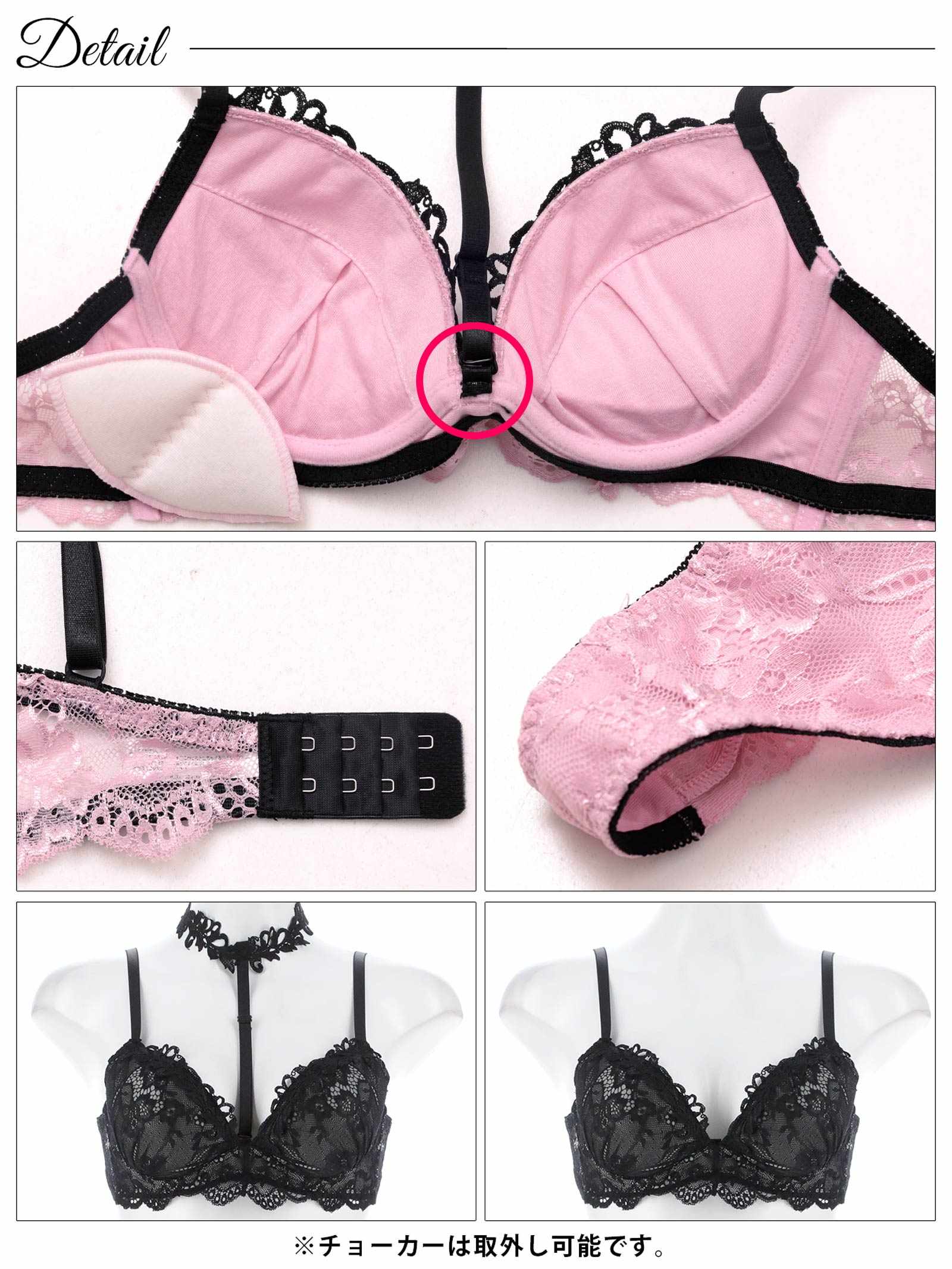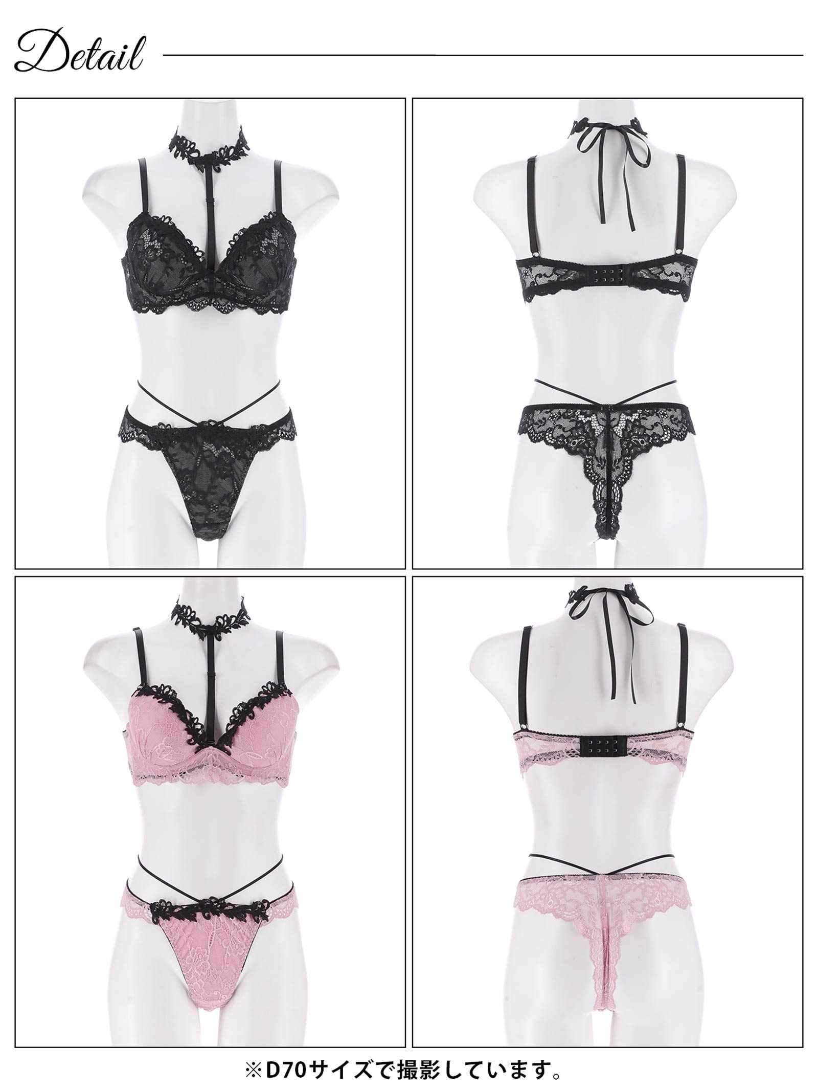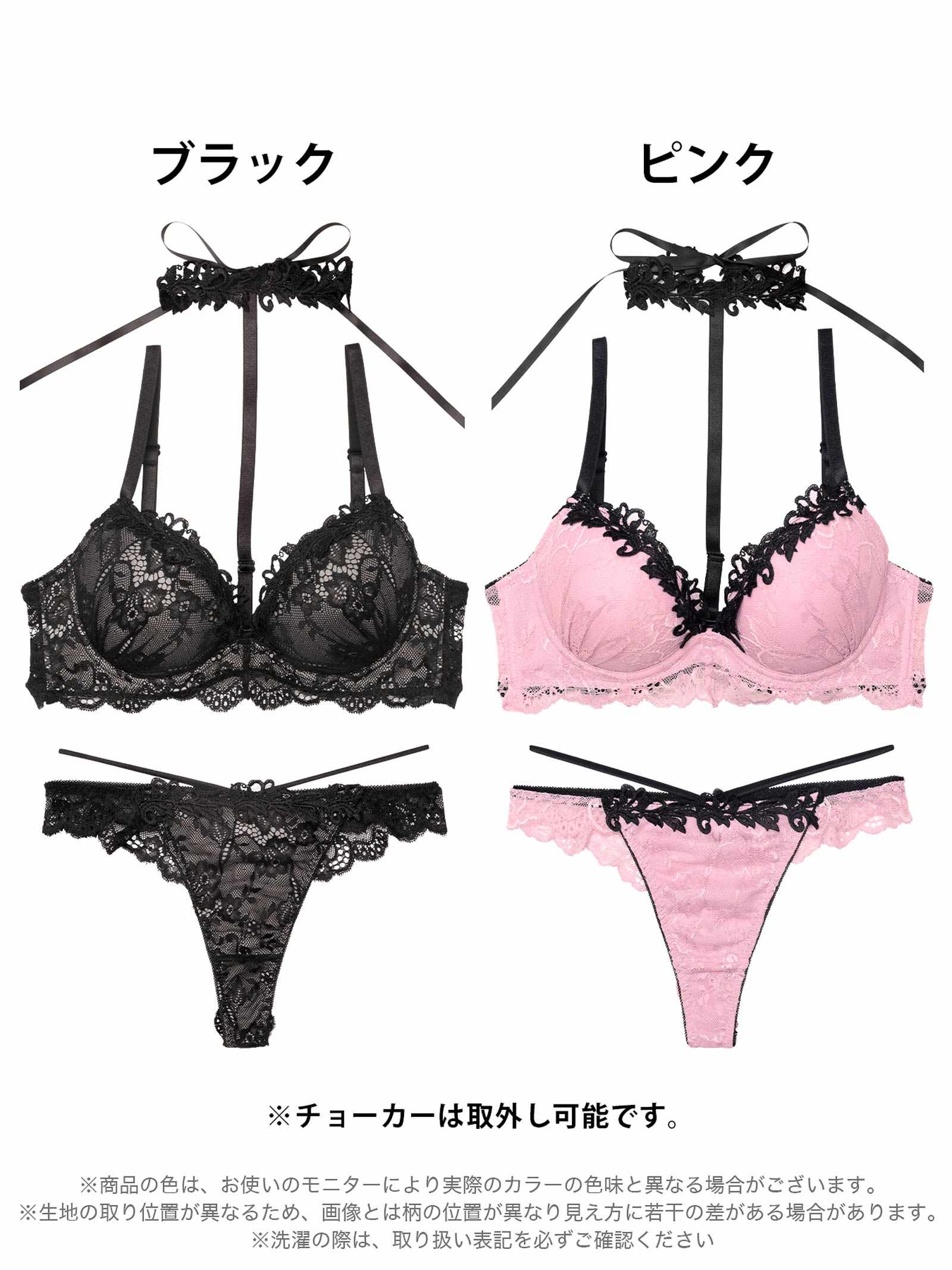 7/9新作!ラグジュアリーレースチョーカーブラジャー&バック透けTバックショーツ