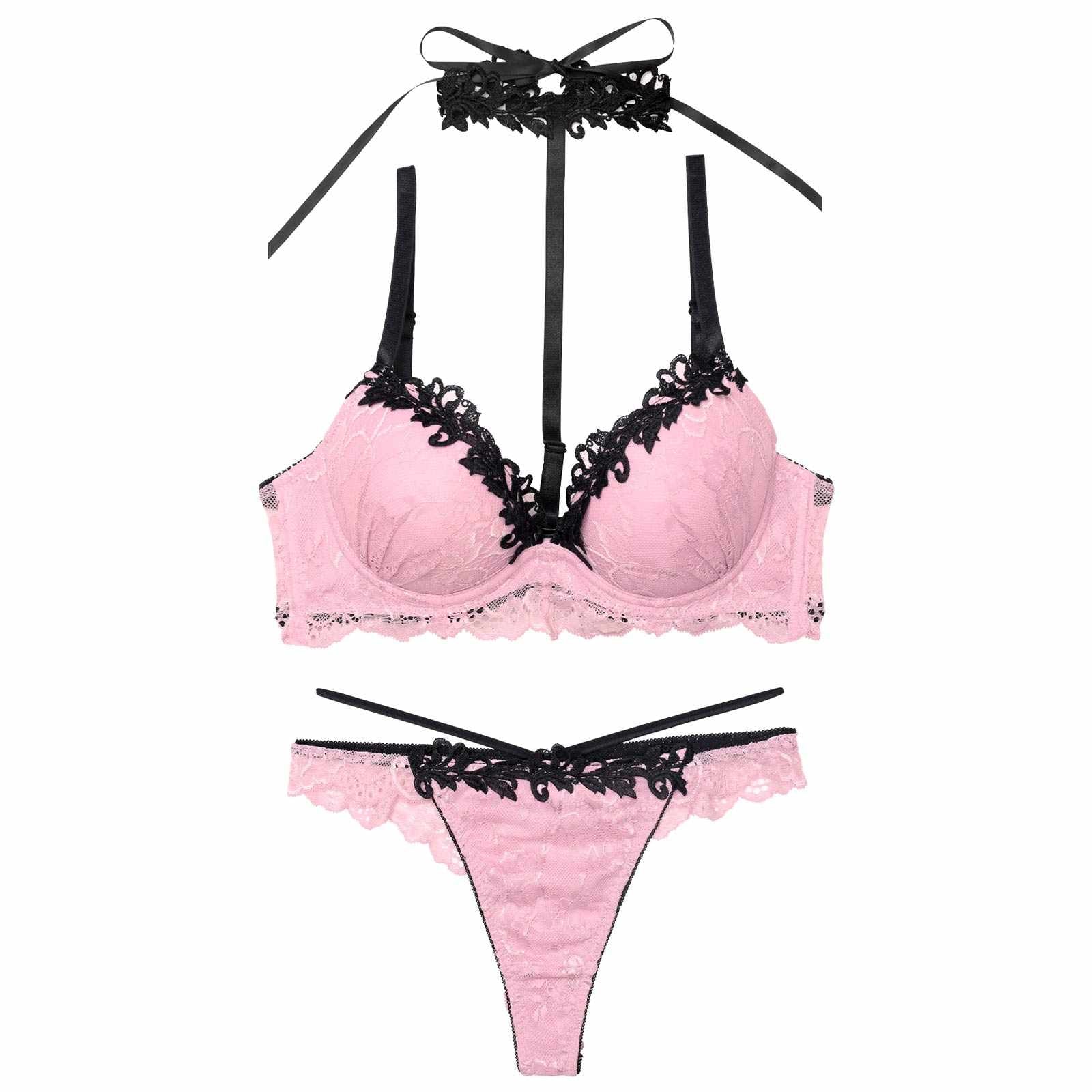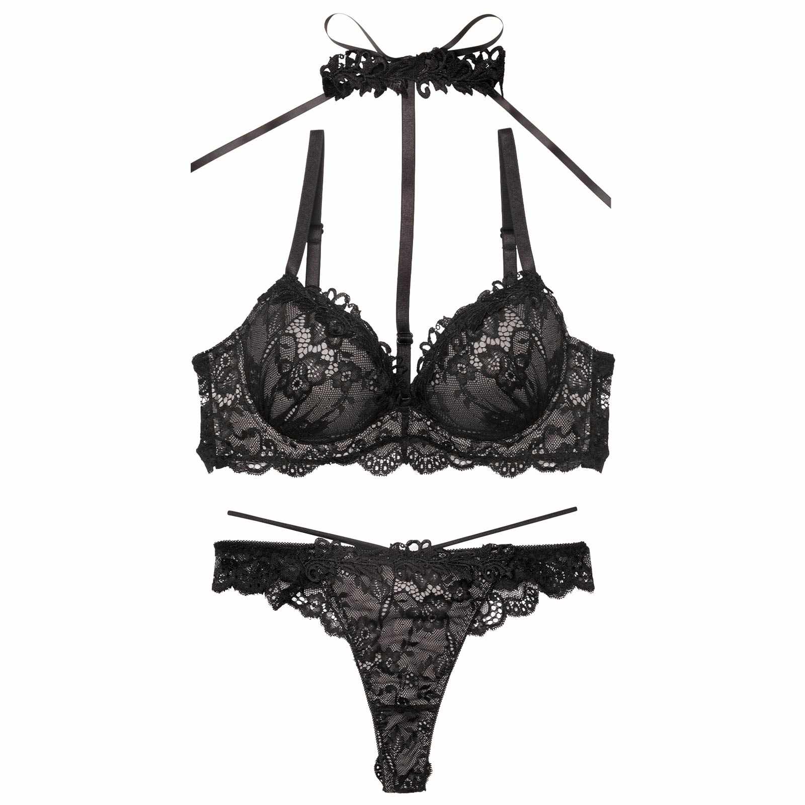 ラグジュアリーレースチョーカーブラジャー&バック透けTバックショーツ