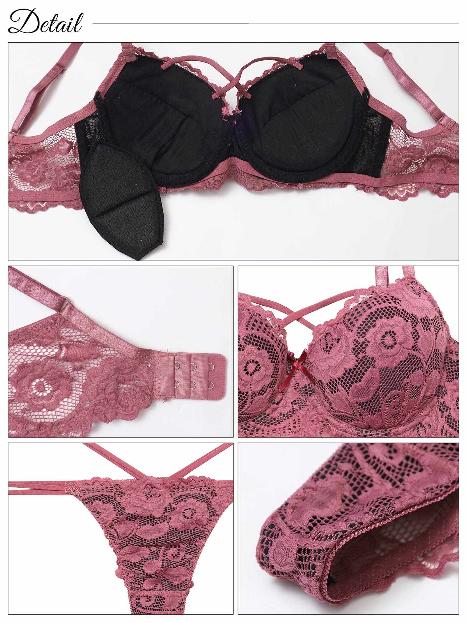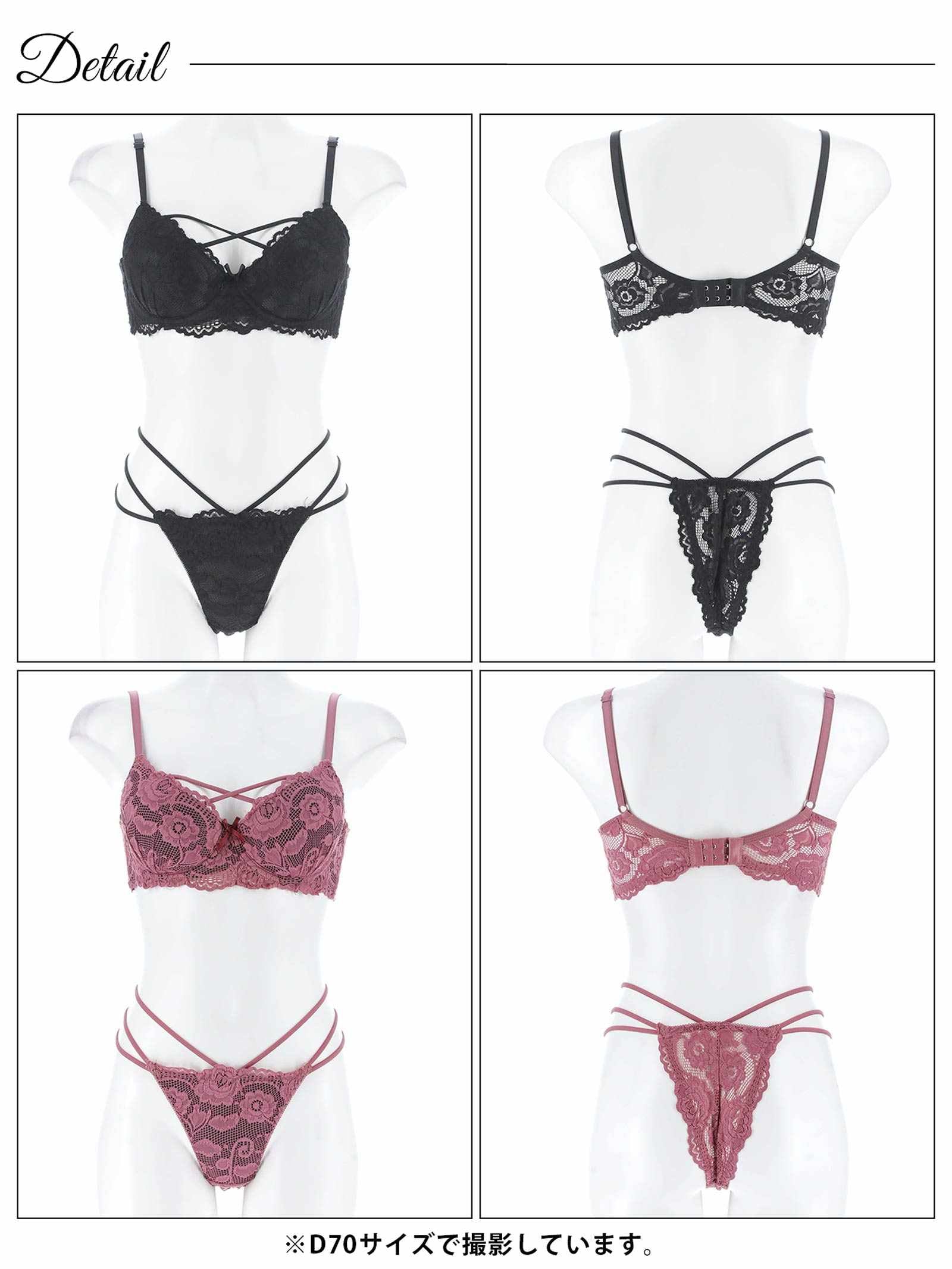 高級感漂うローズレースを全面に重ねた大人セクシーなランジェリー。レース越しに透けるブラックの生地や素肌の透け感が360度色気たっぷり♪ 思わず見とれる華奢なストリングデザインで女性らしい谷間や腰回りを美しく演出してくれる1着です。