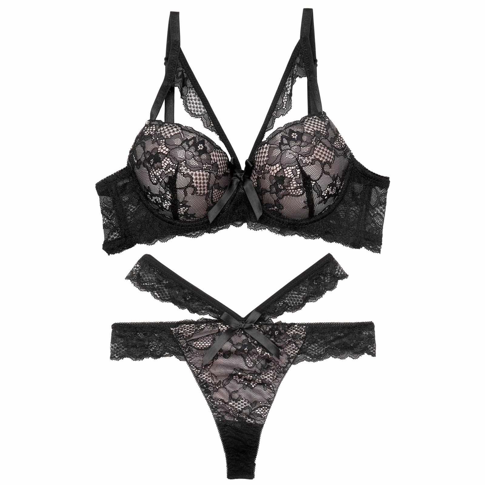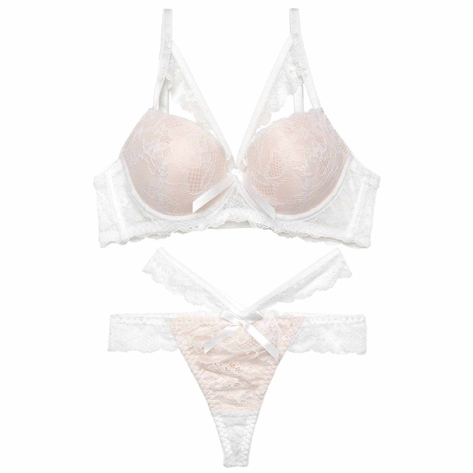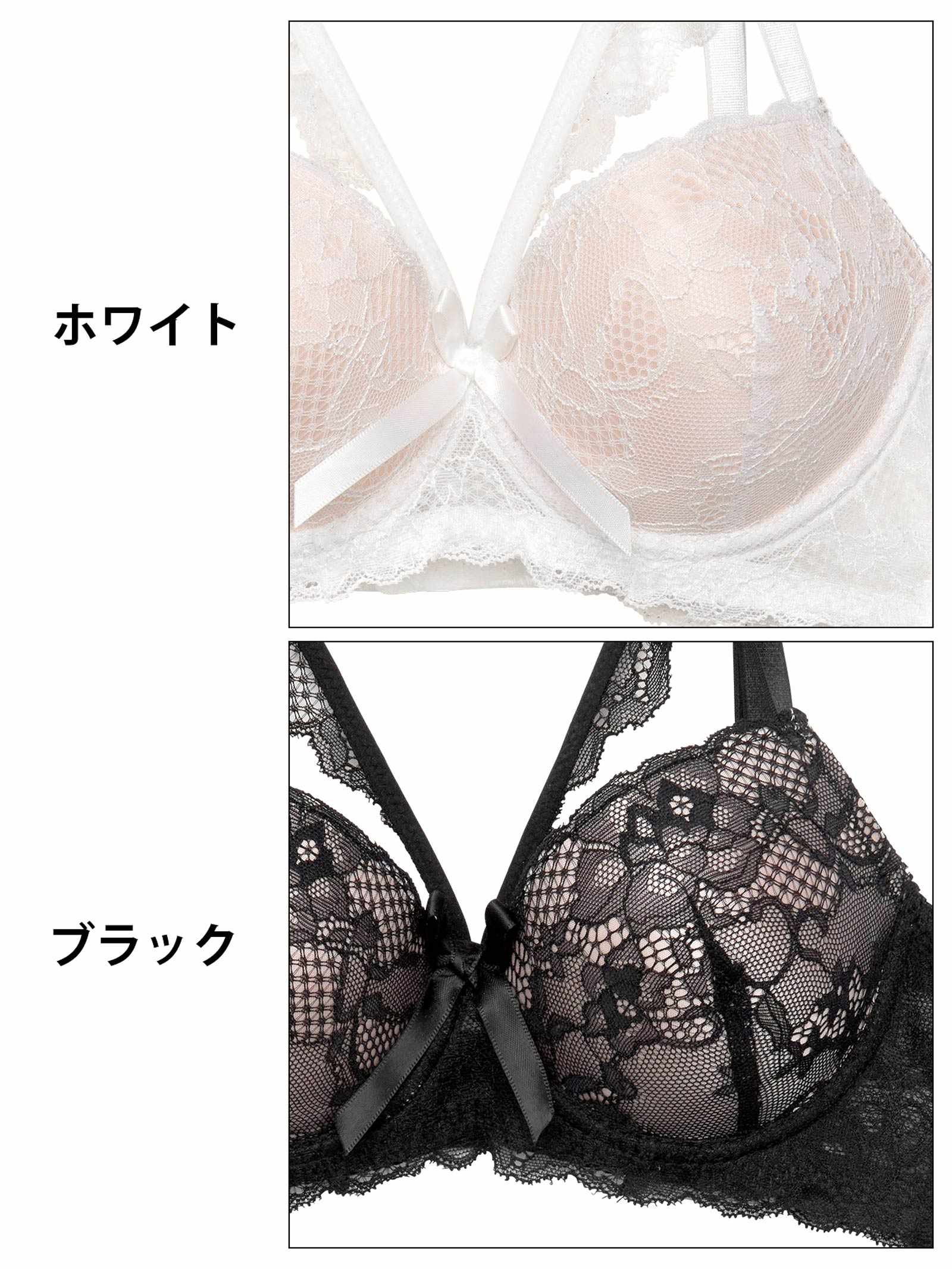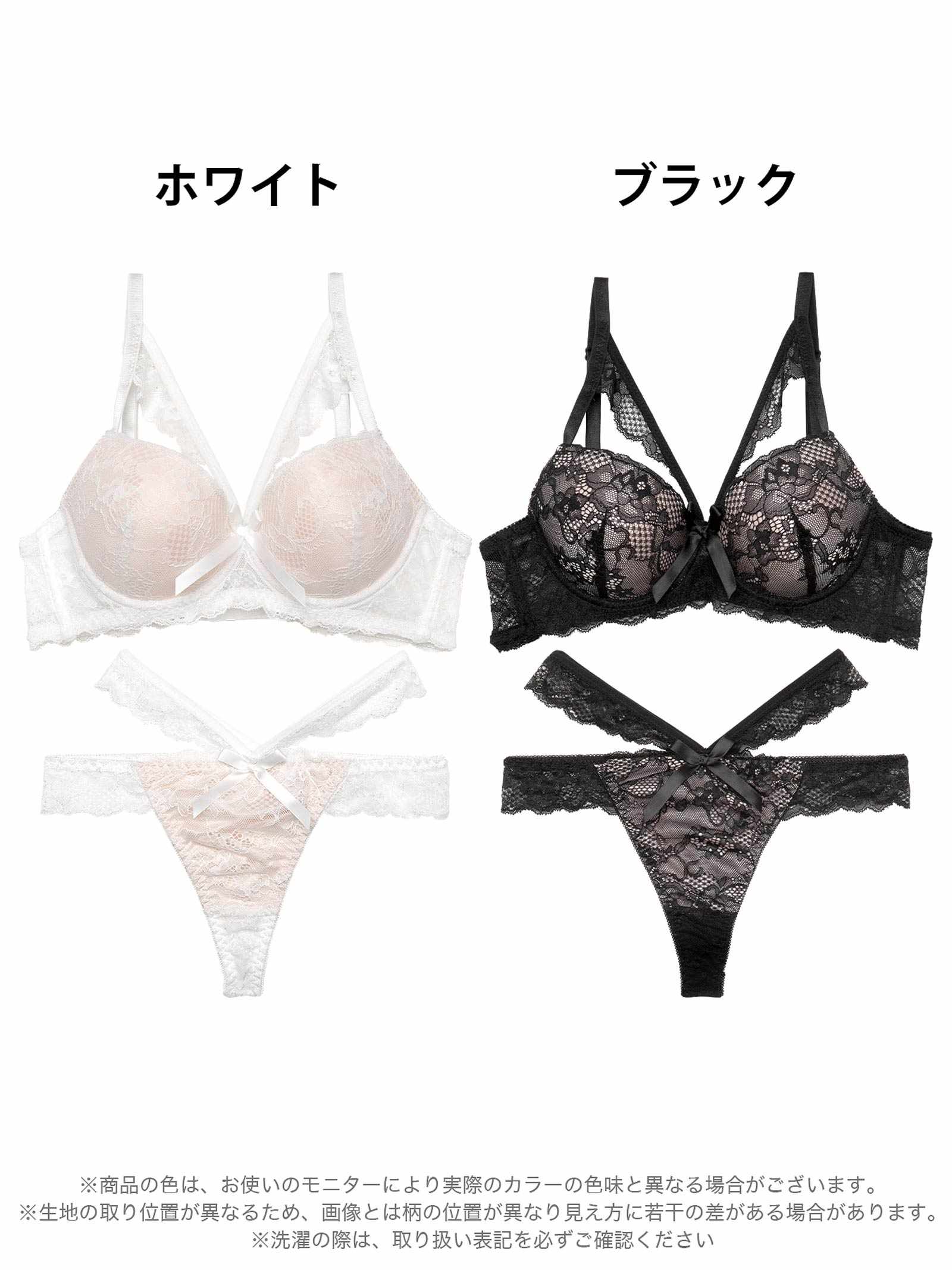 【EFサイズ】ラディアントコードレース育乳脇高ブラジャー&バック透けTバックショーツ