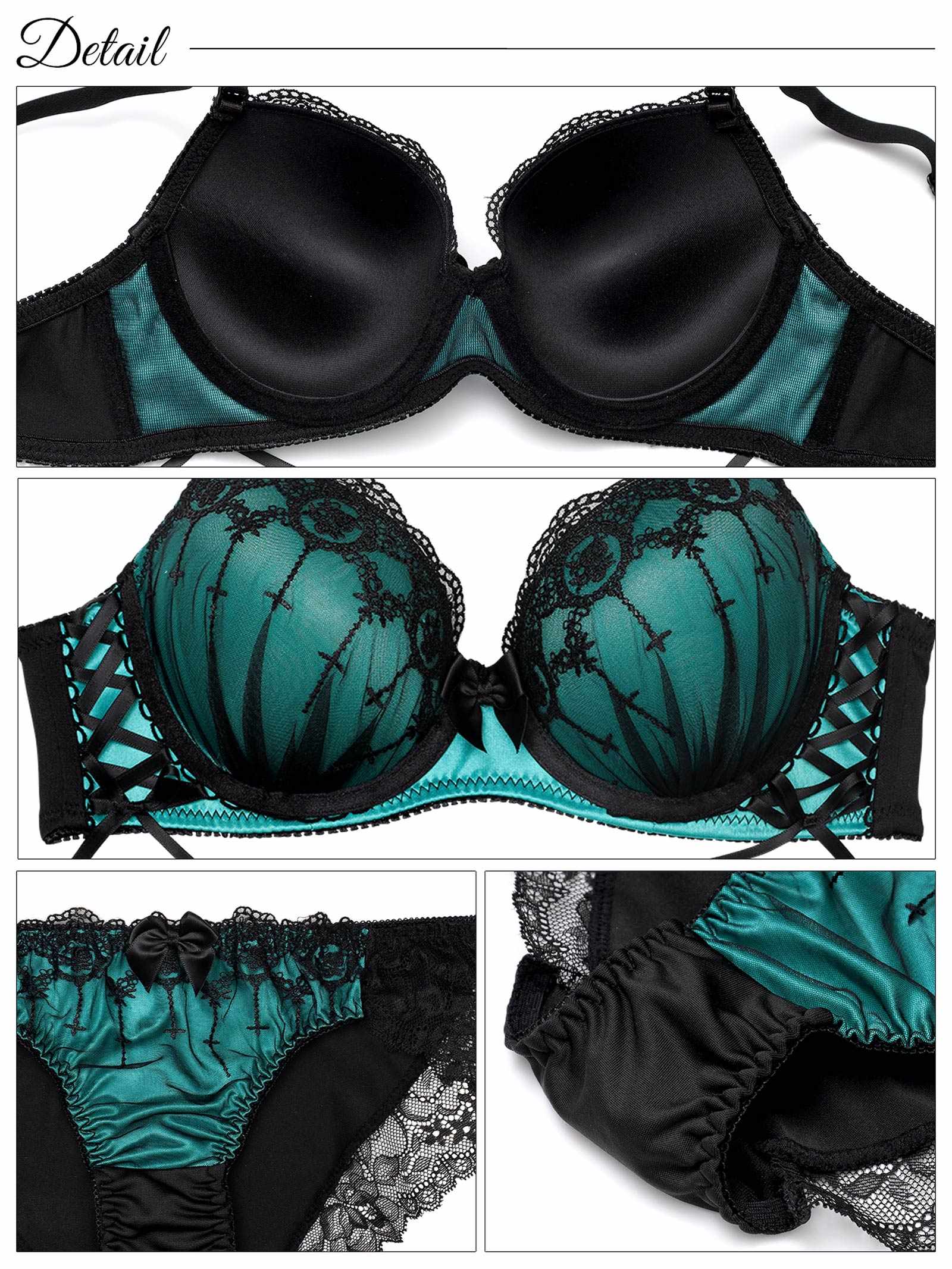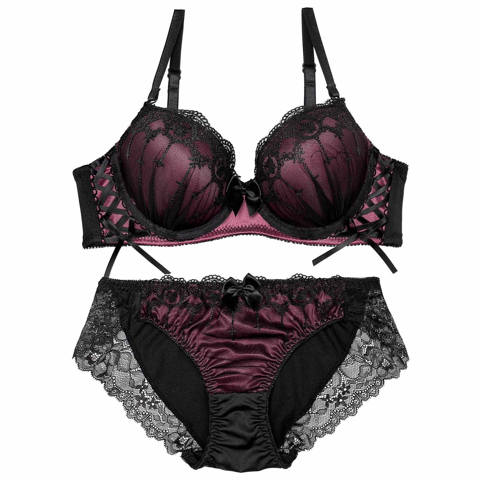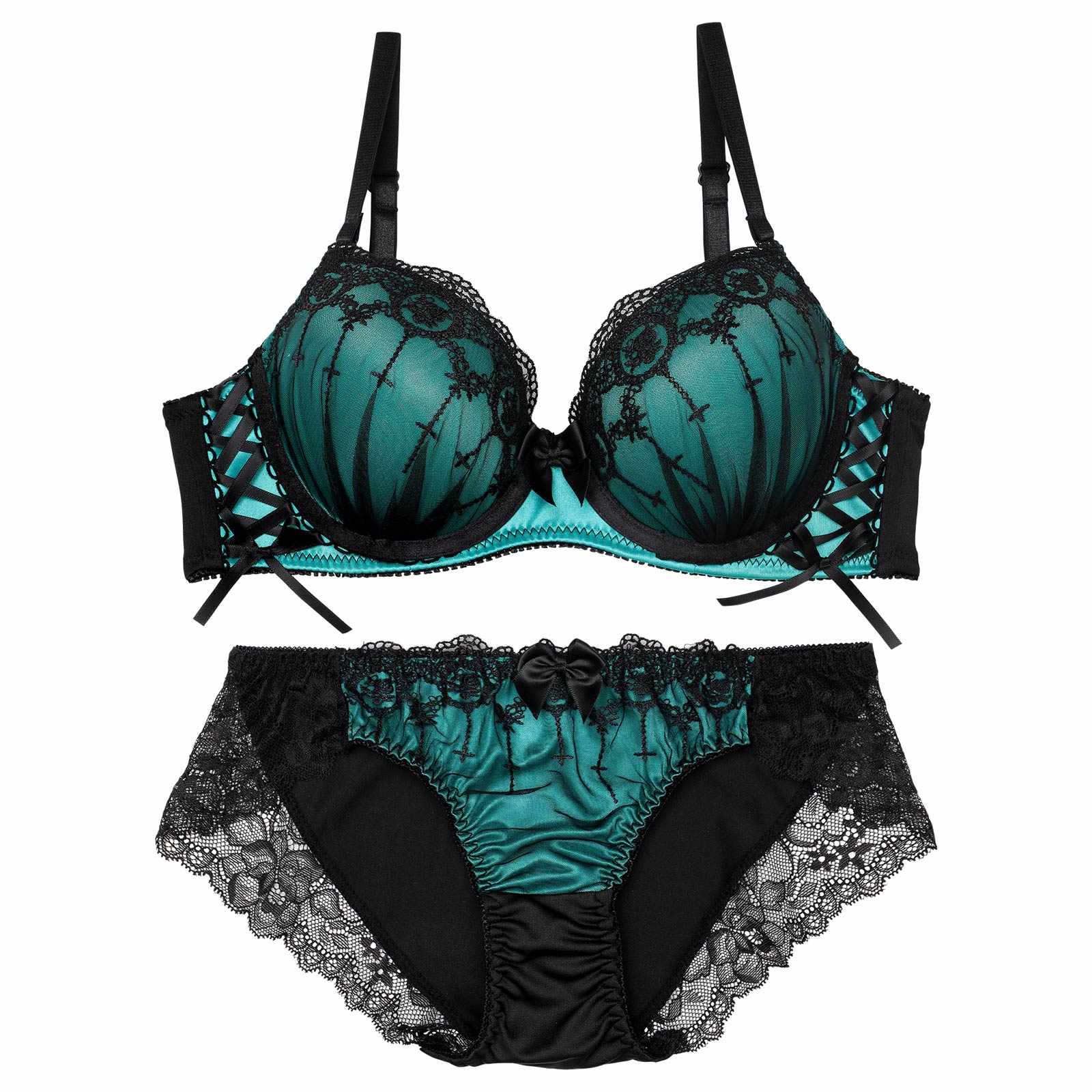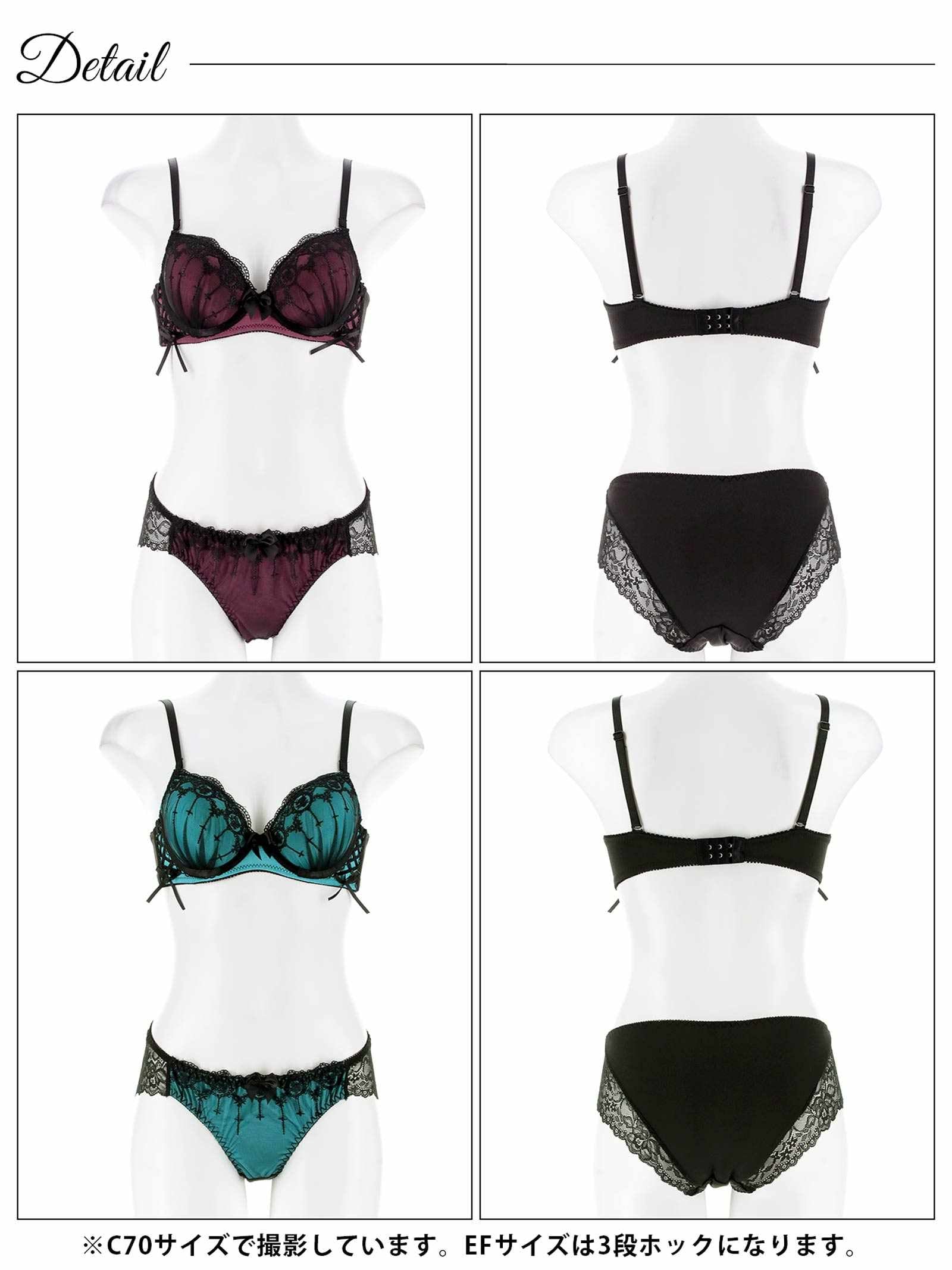 【EFサイズ】ラビリンスシアーレースアップブラジャー&フルバックショーツ