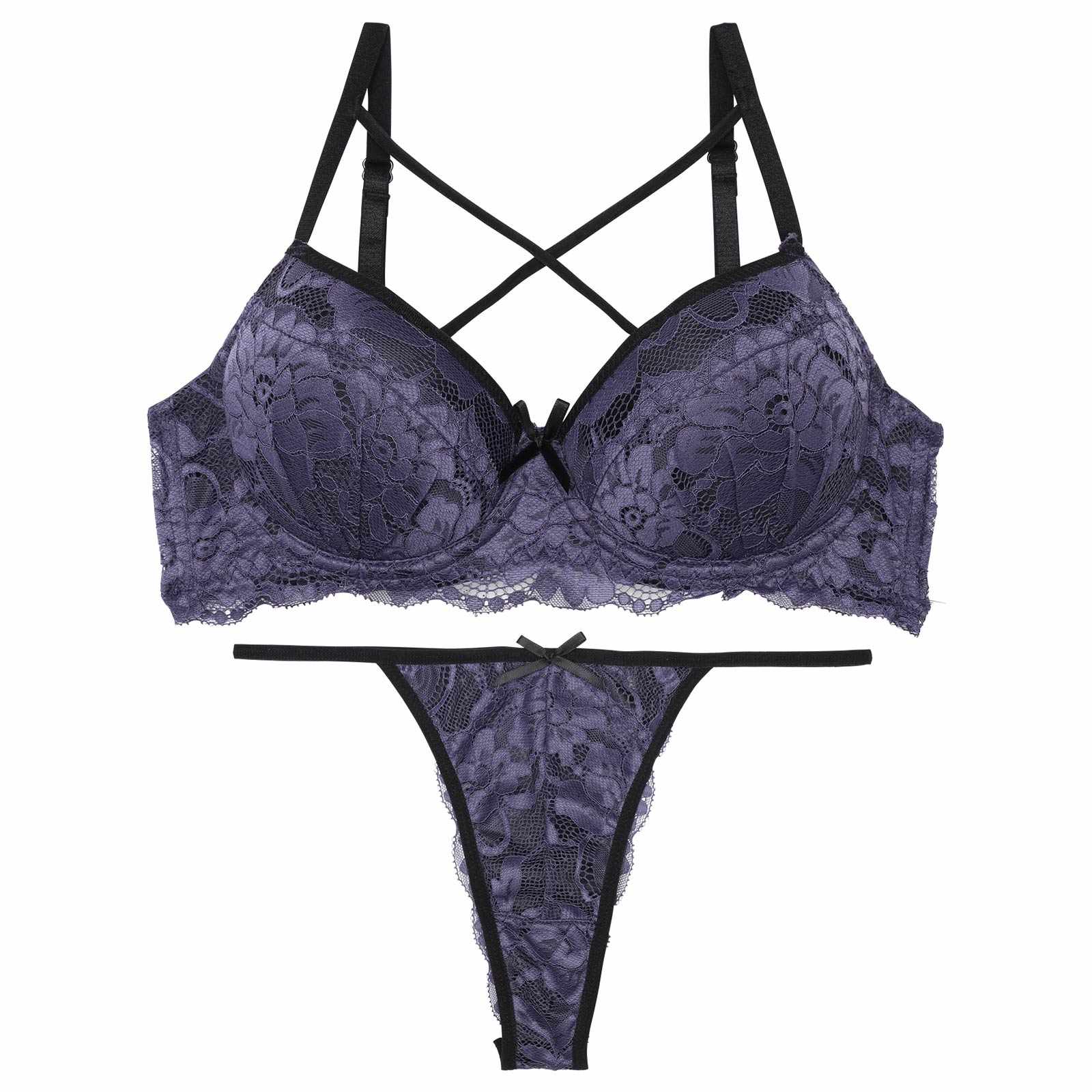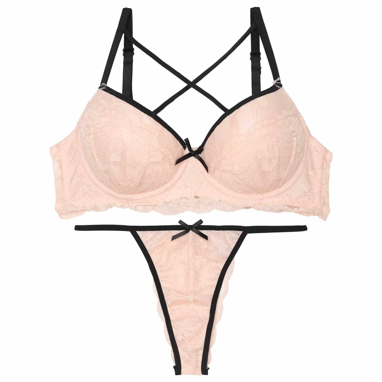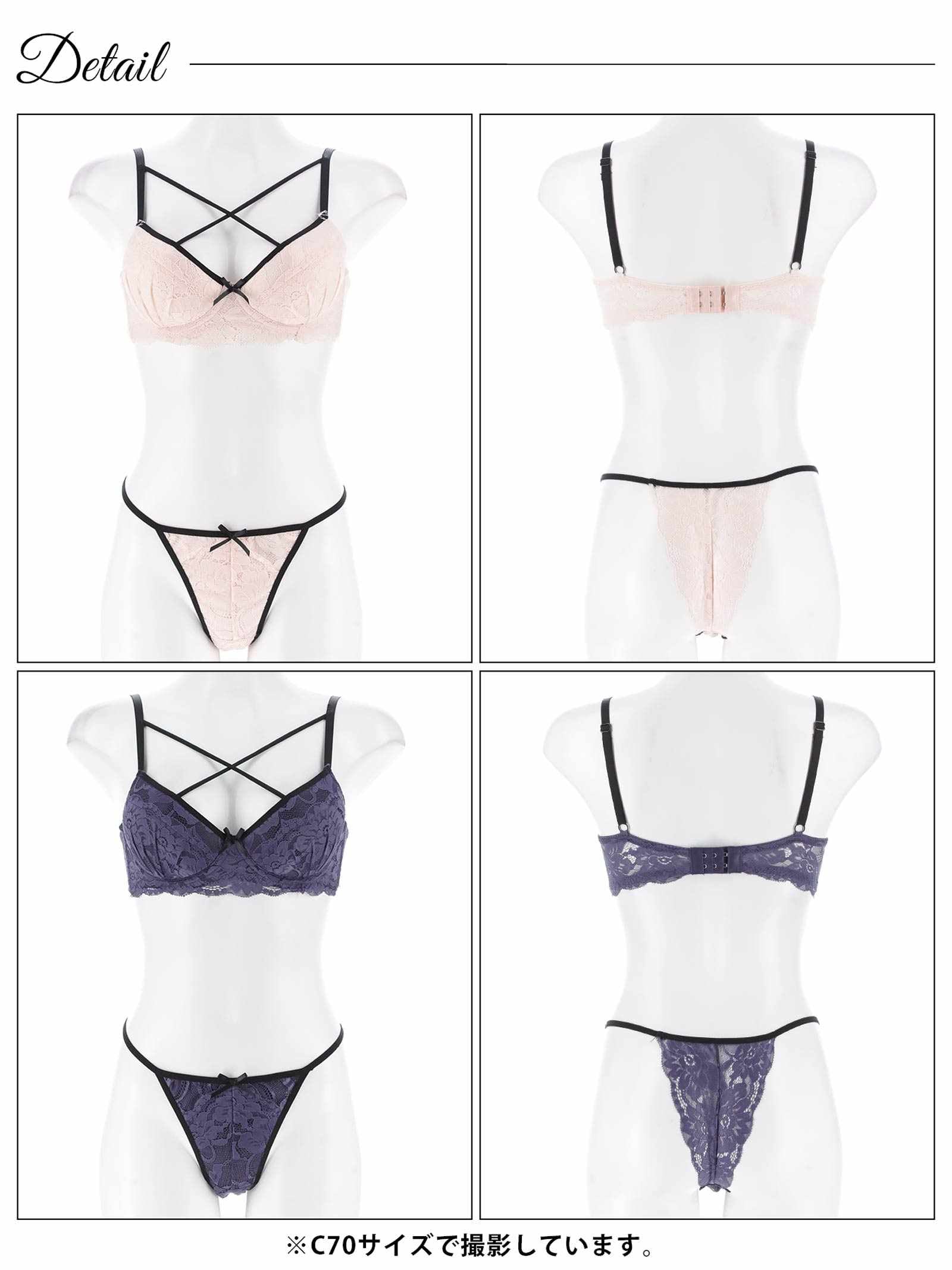 【EFサイズ】パイピングクロスレーシィブラジャー&バック透けTバックショーツ