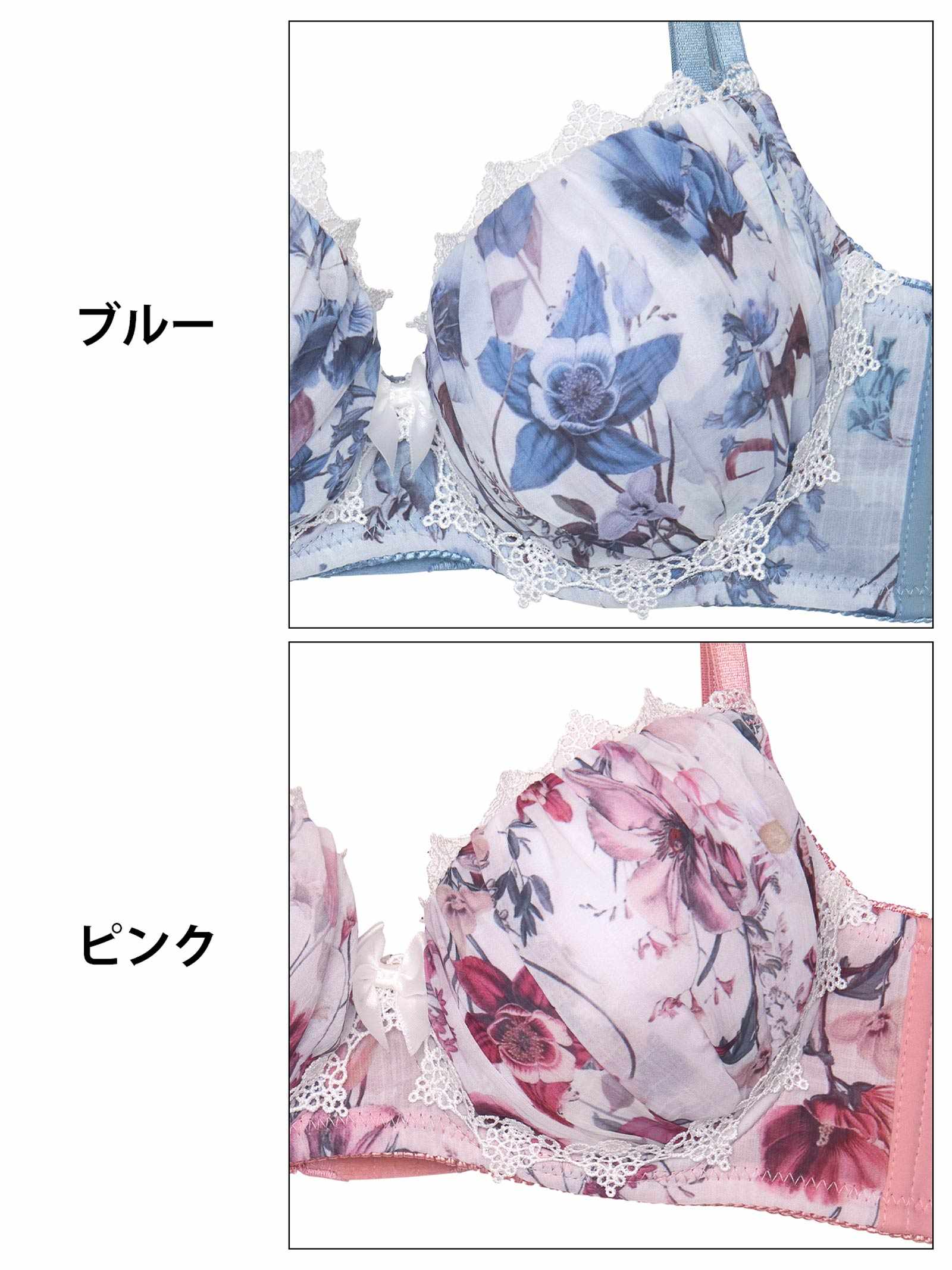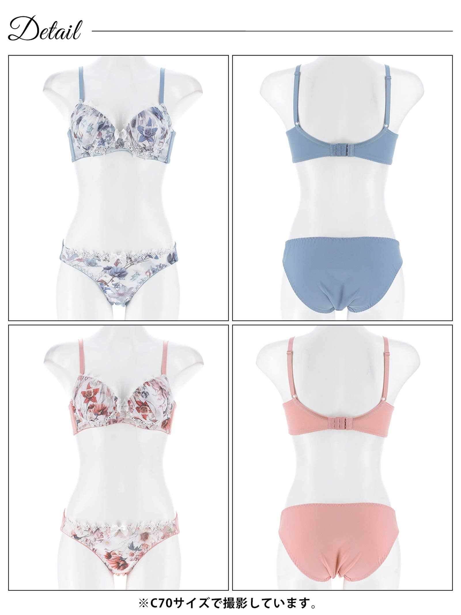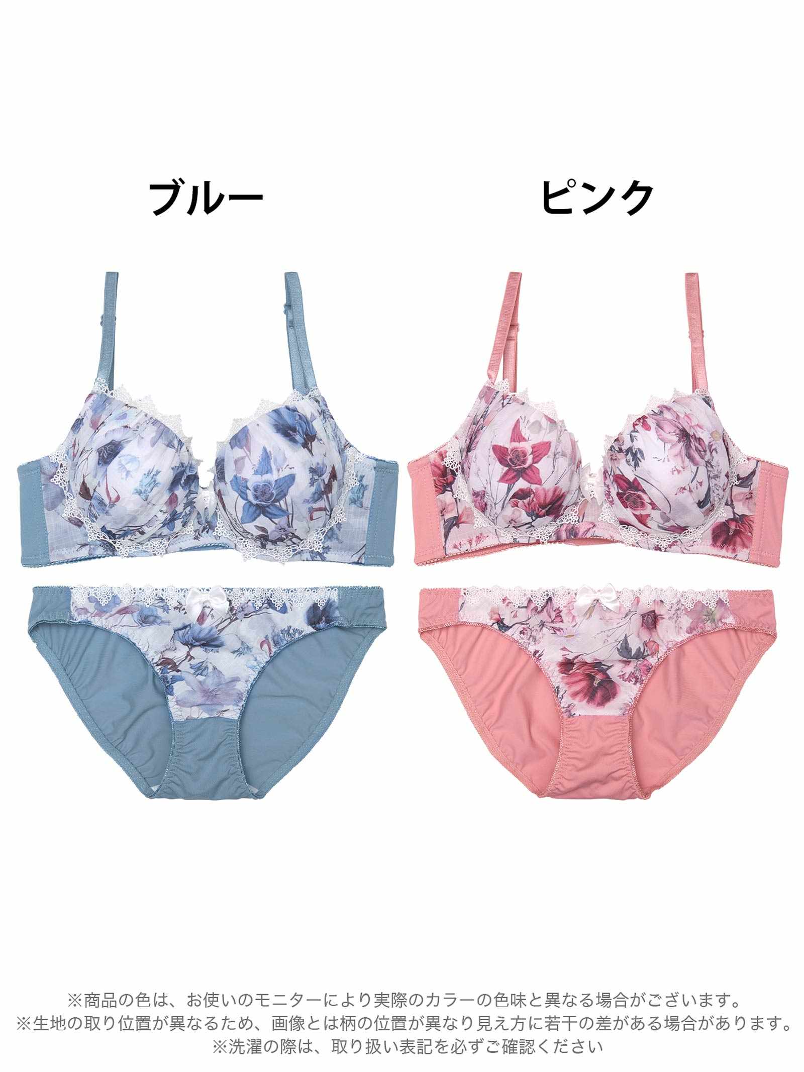 大輪のフラワープリントが胸元を飾る、華やかで大人スウィートな雰囲気のランジェリー。お花のまわりにはリボンや繊細なケミカルレースをあしらい女の子らしさをアップさせます♪ショーツはデイリー使いにもぴったりなフルバック仕様で安心&安定感のある履き心地です◎モデル…minori