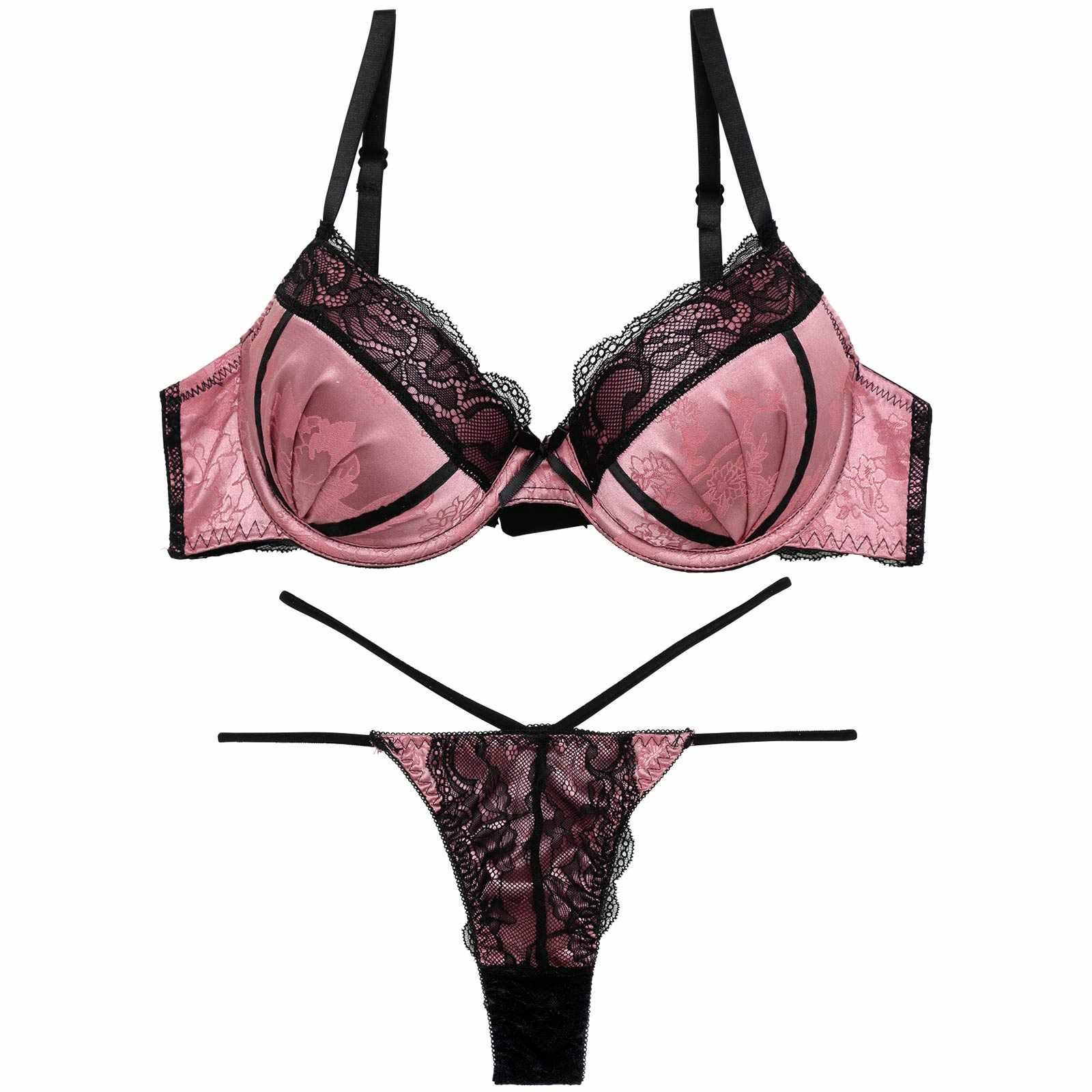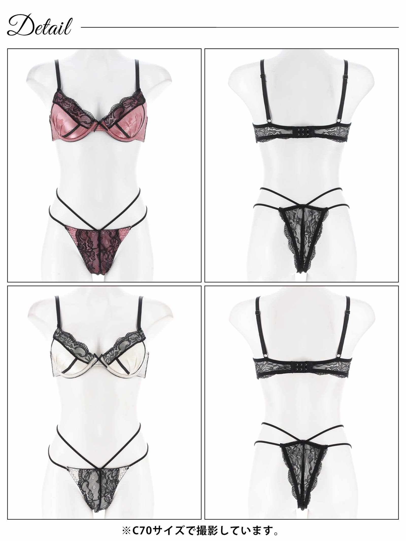 【EFサイズ】ブリリアントサテンレーシィブラジャー&バック透けTバックショーツ