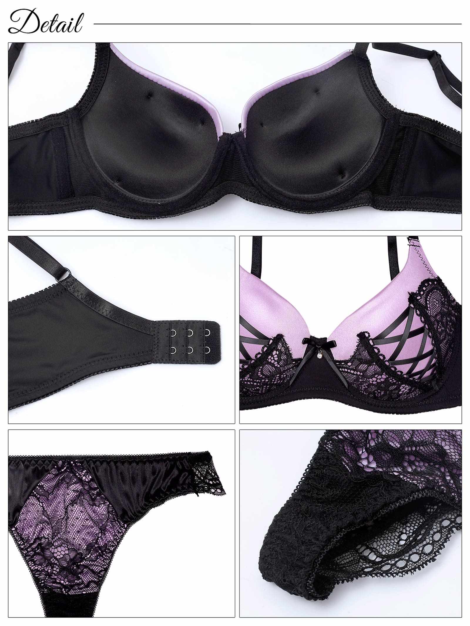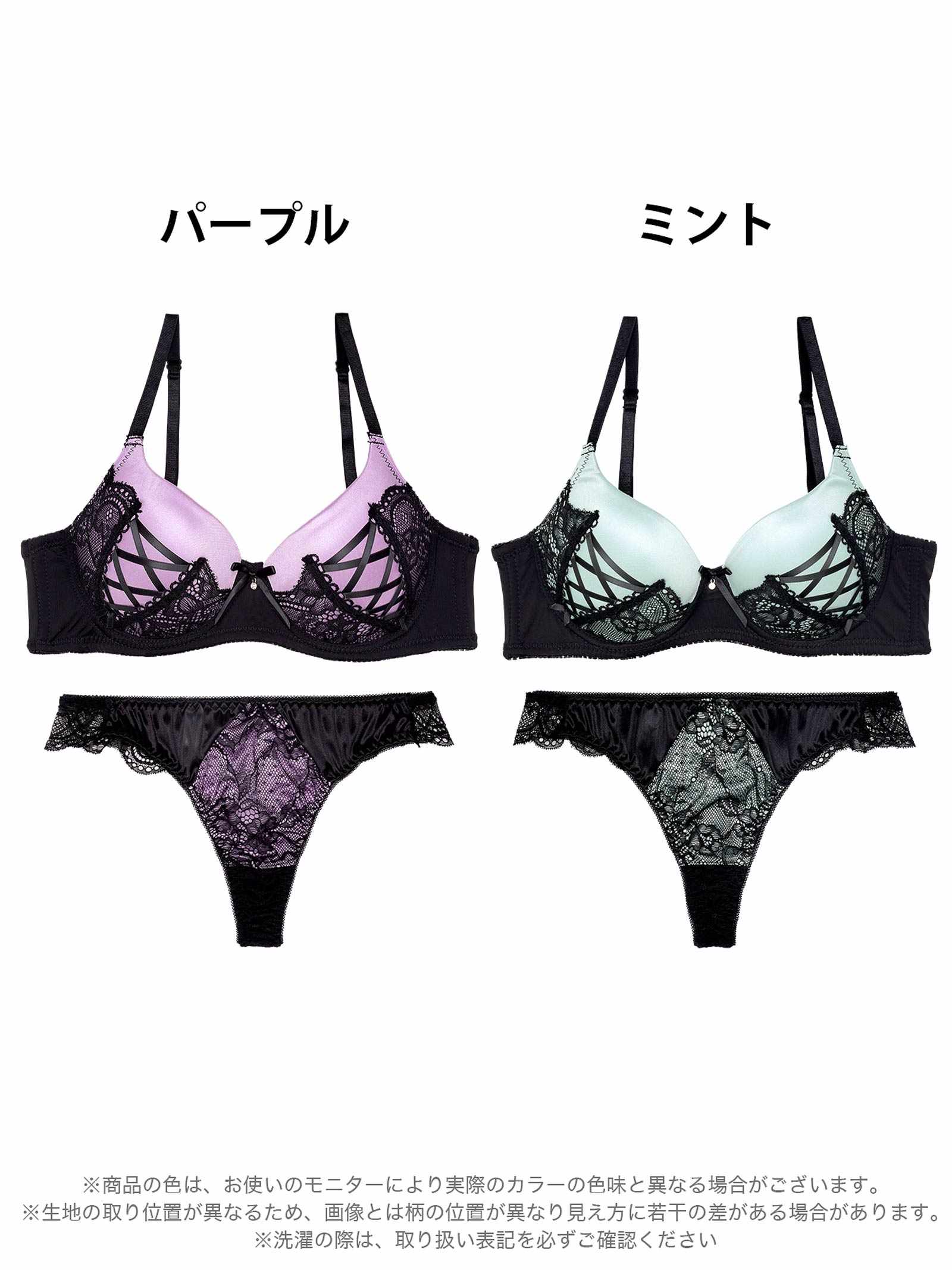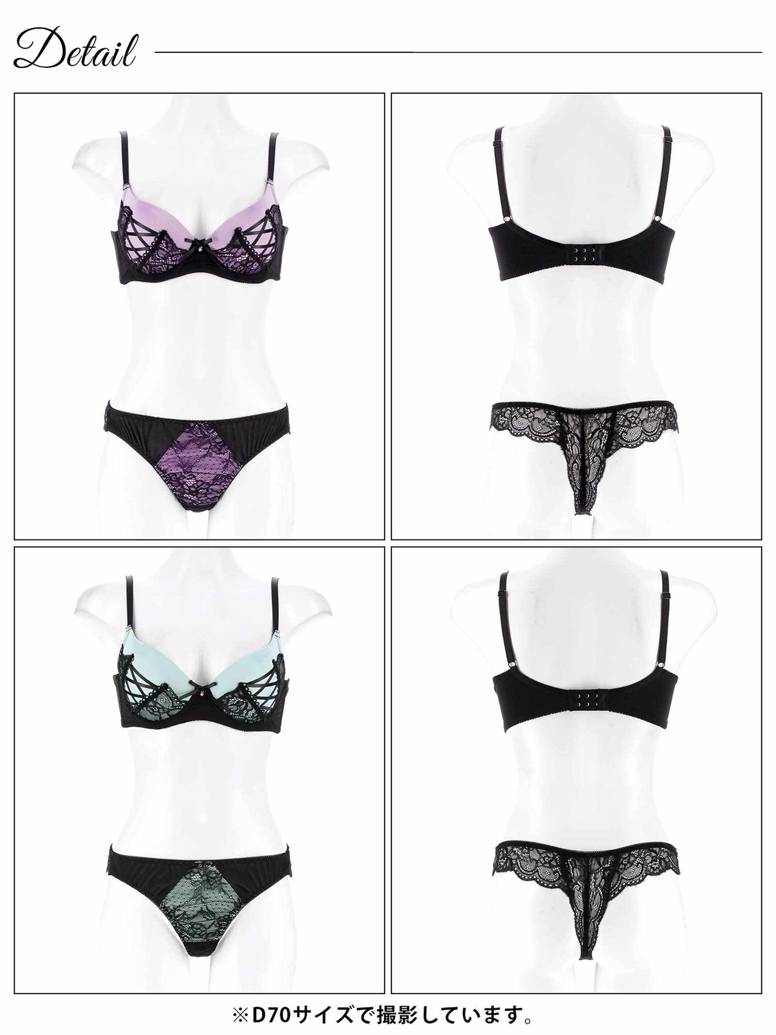 アリュールレースアップ育乳脇高ブラジャー&バック透けTバックショーツ
