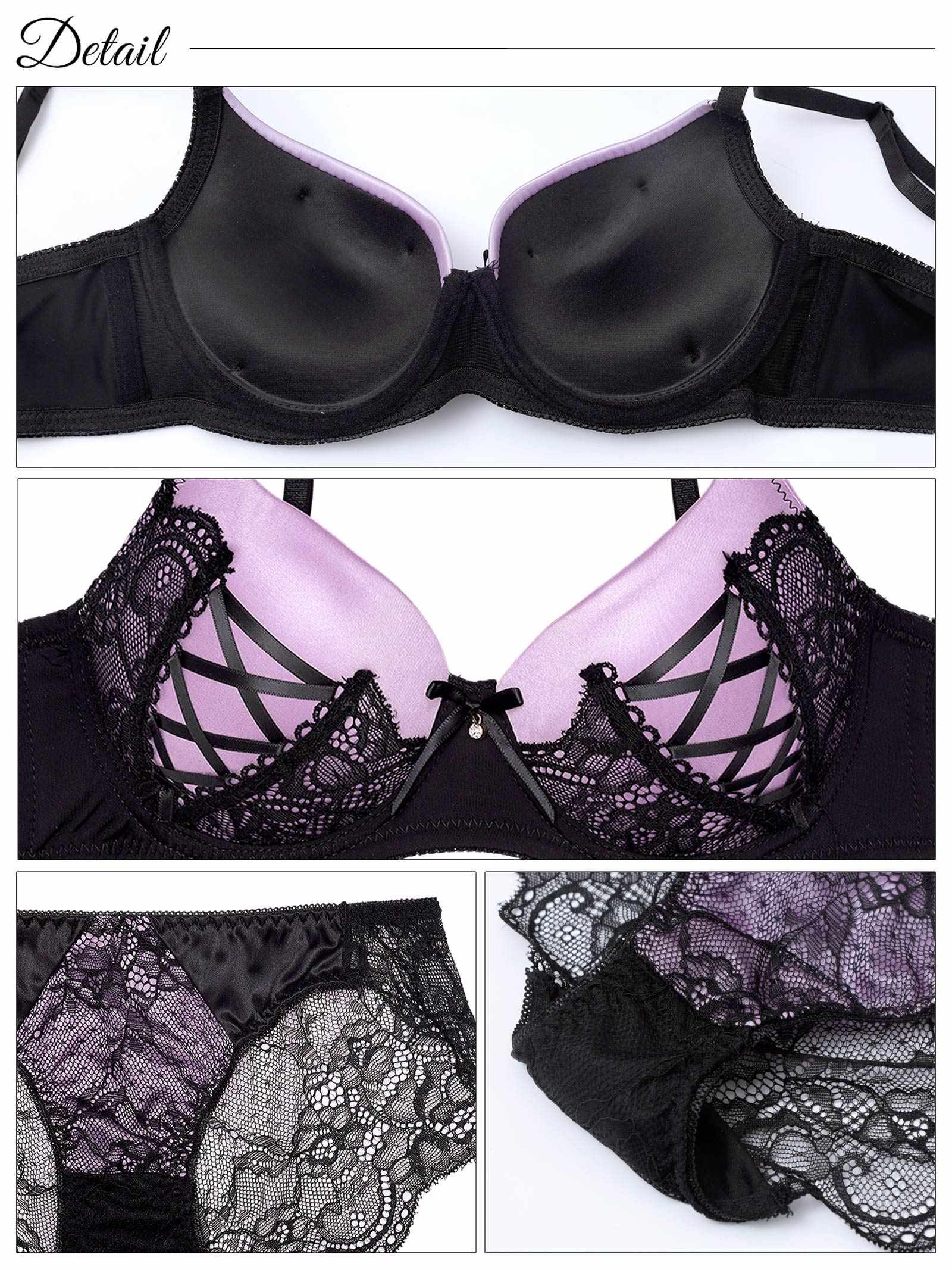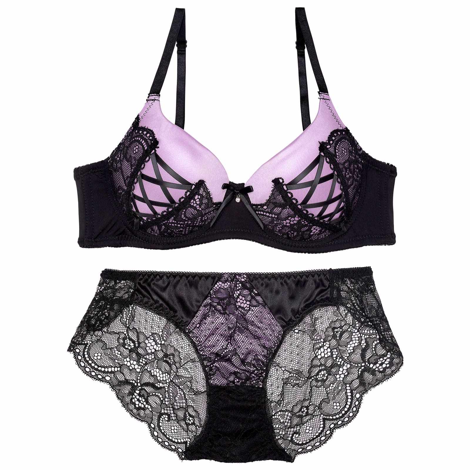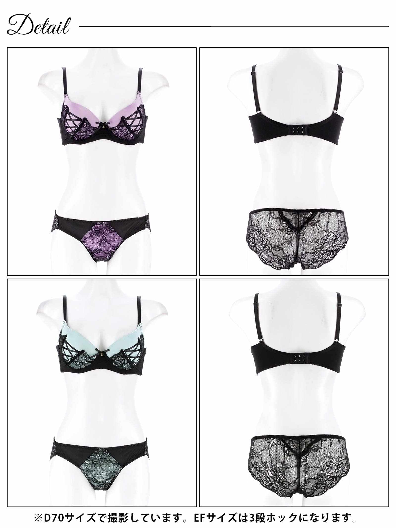 【EFサイズ】アリュールレースアップ育乳脇高ブラジャー&バック透けフルバックショーツ