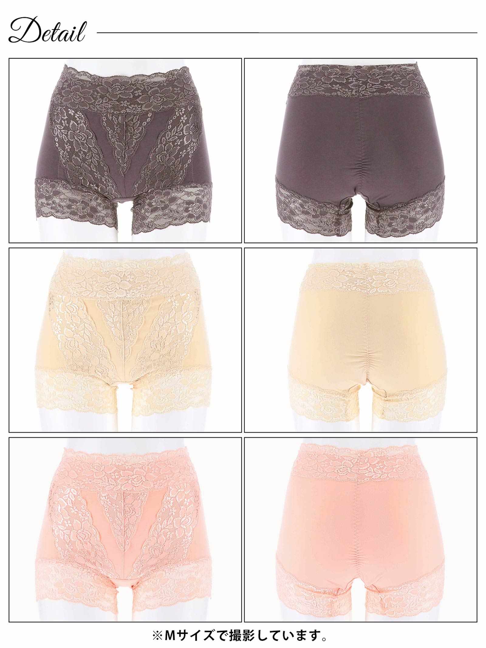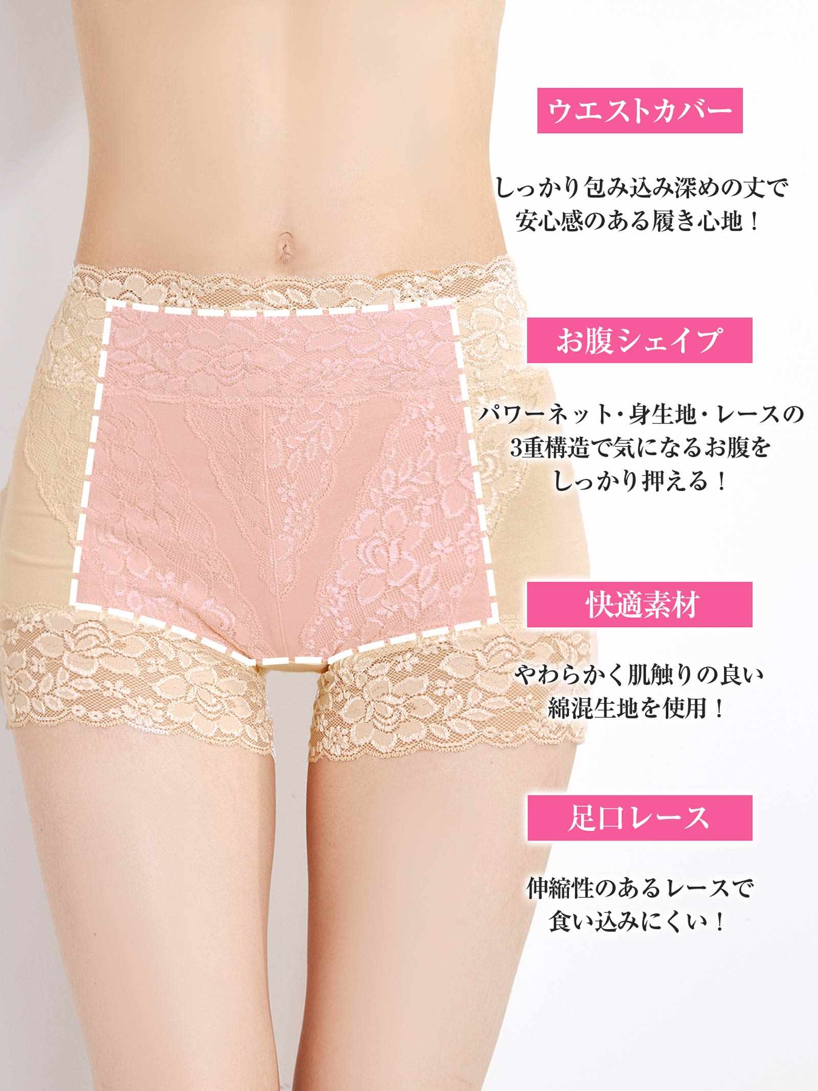 一部丈/クロッチ当て布:有/股上:深め/伸縮性:有/お腹部分パワーネットを裏打ち
