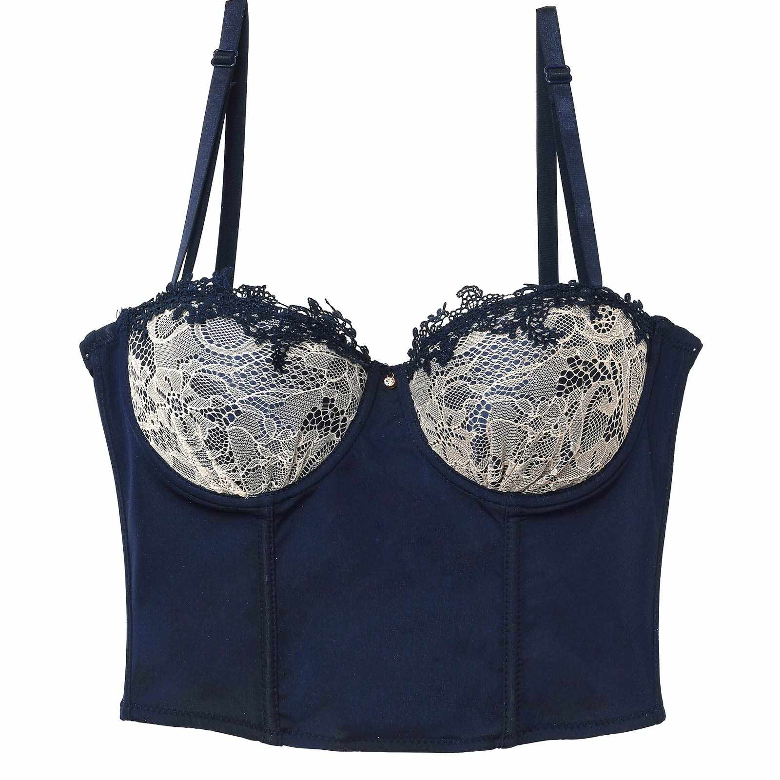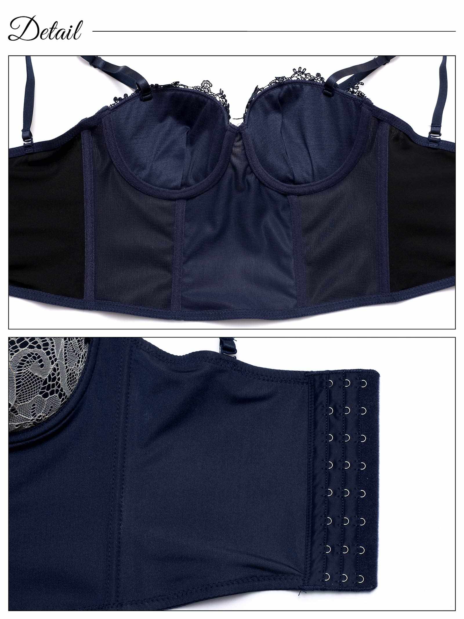 繊細なレース&ケミカルレースをあしらった上品でシックなデザインのビスチェ。8段3列のバックホック仕様で安定感も抜群◎ストラップは取り外し可能なので、オフショルなど肌見せコーデにも合わせられます♪