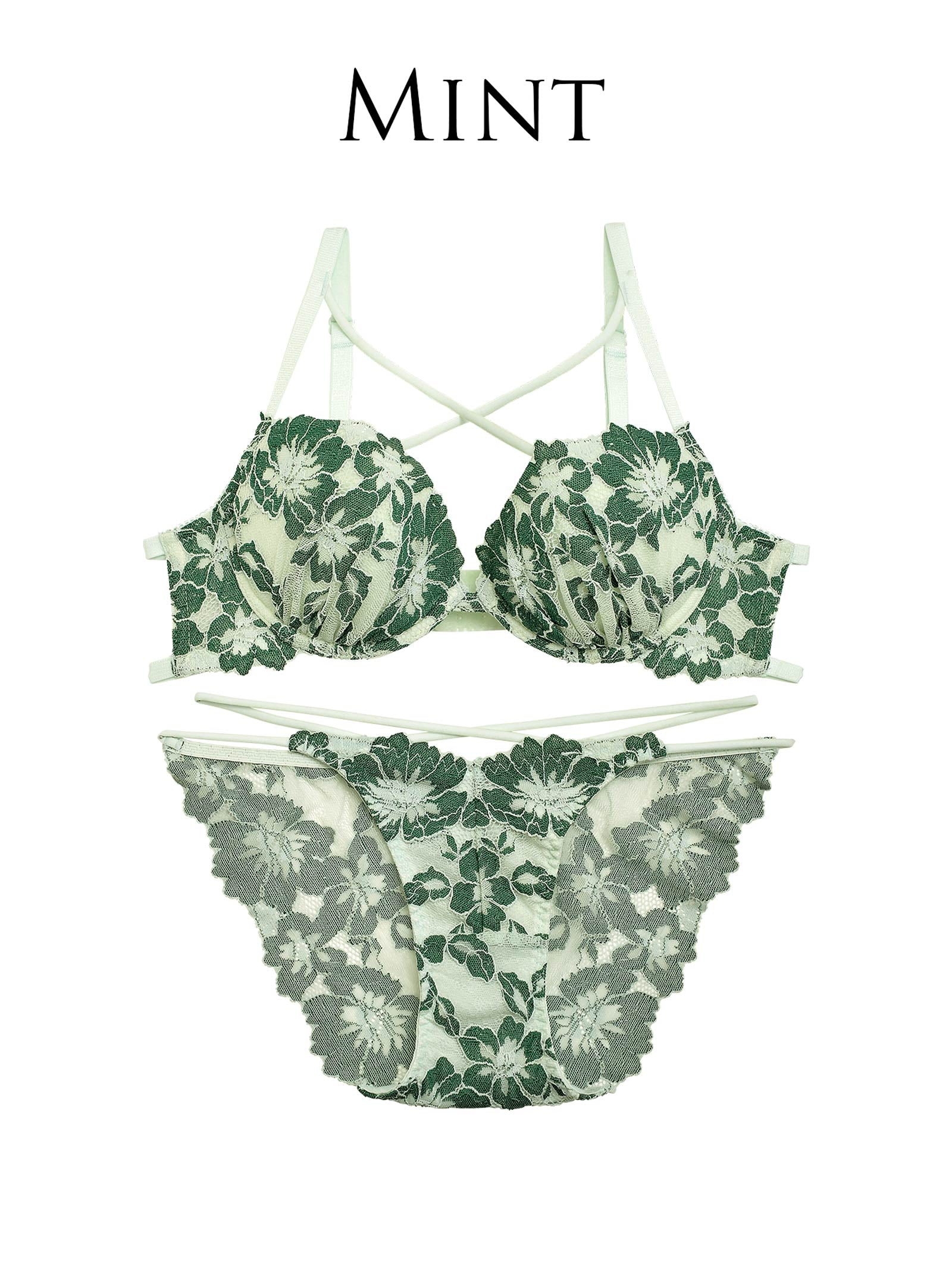 【Reinest】ファビュラスフラワーコードブラジャー&バック透けフルバックショーツ