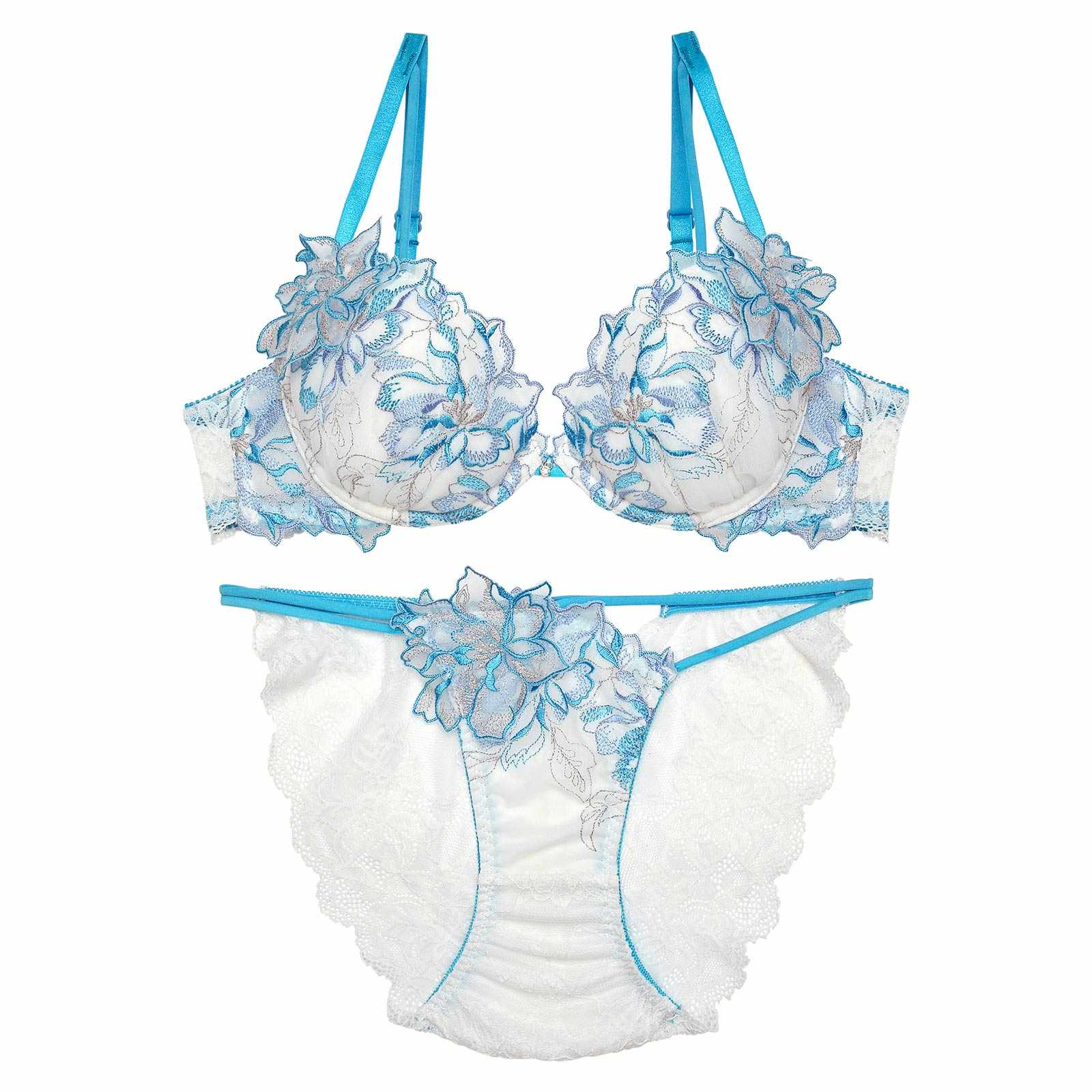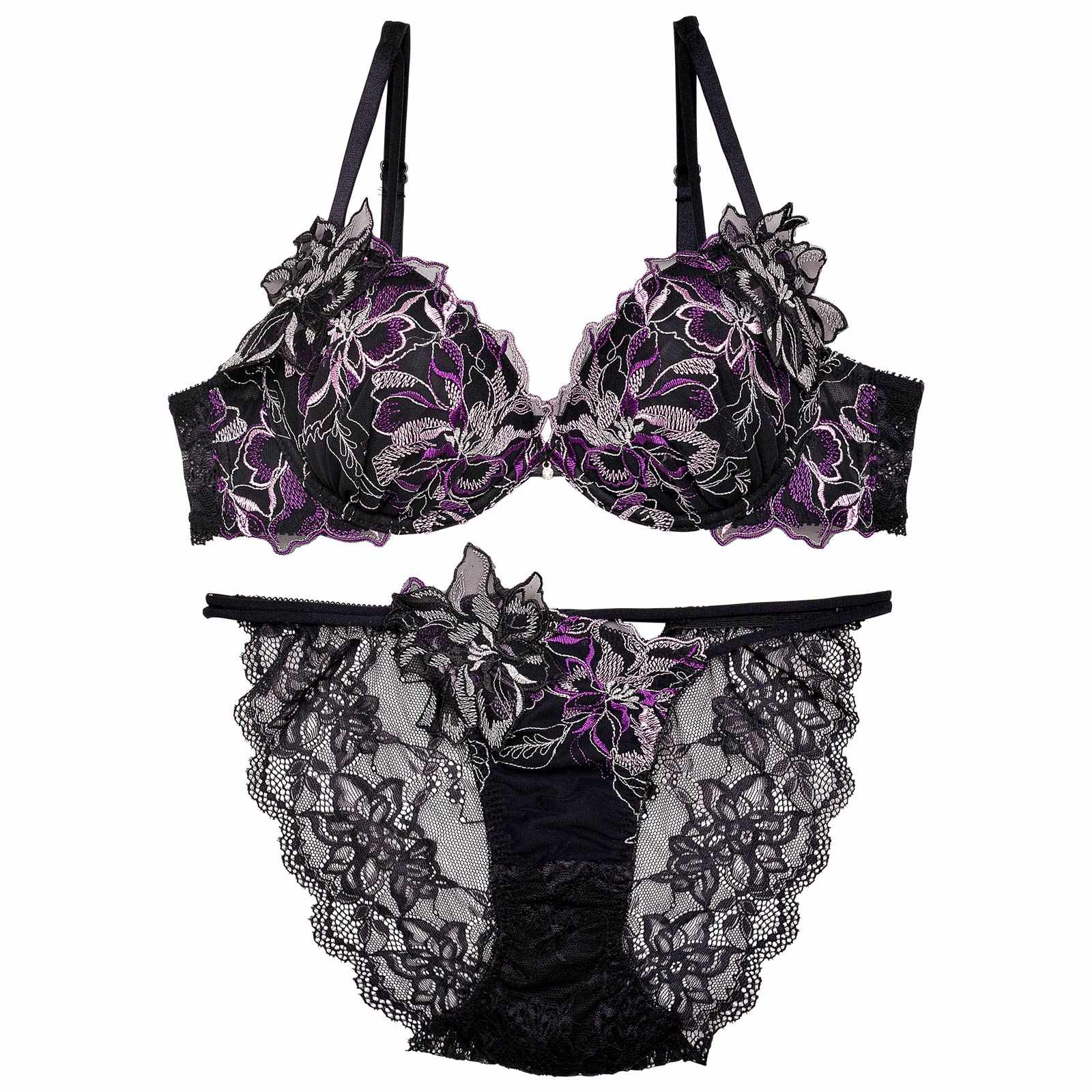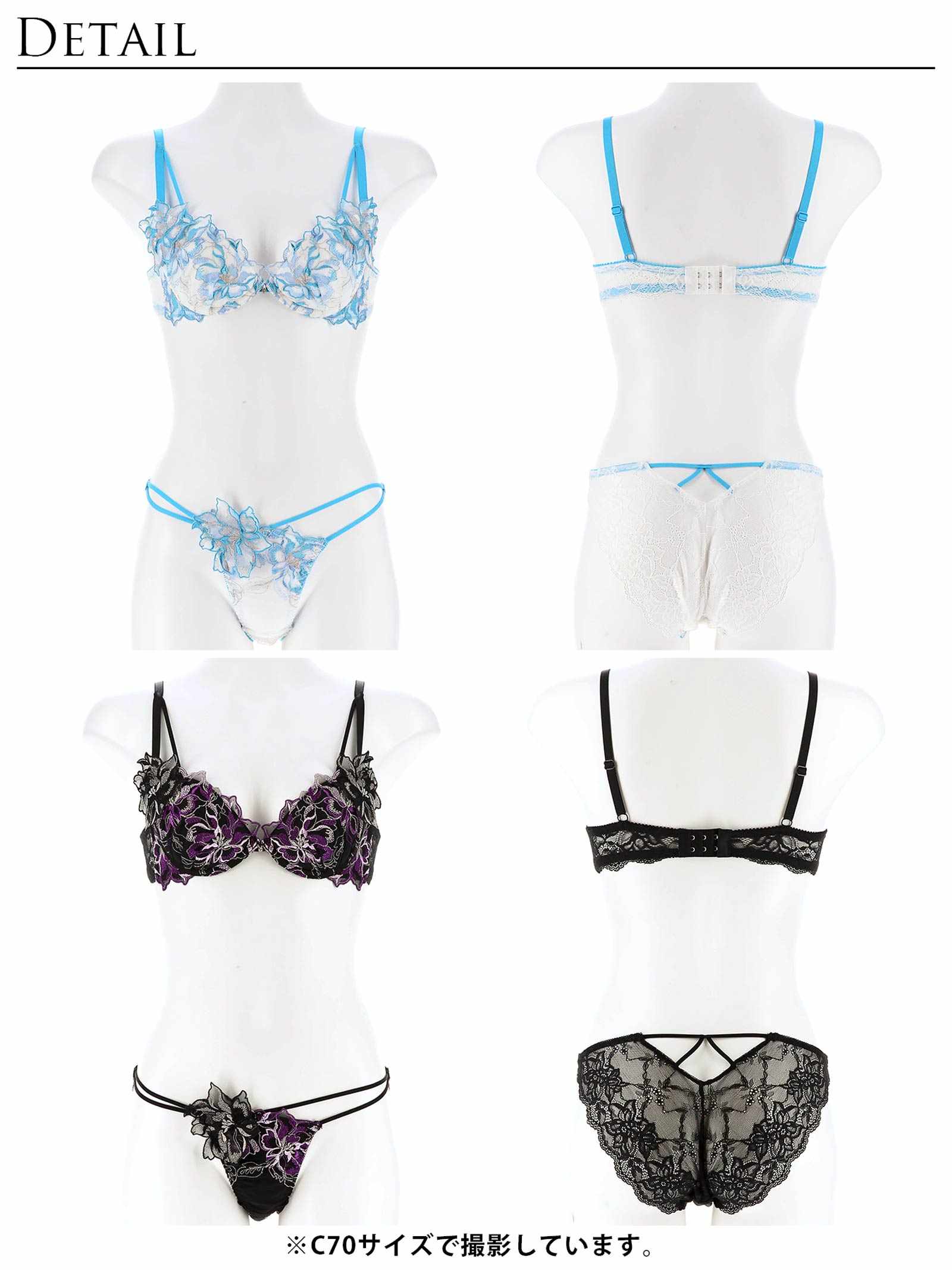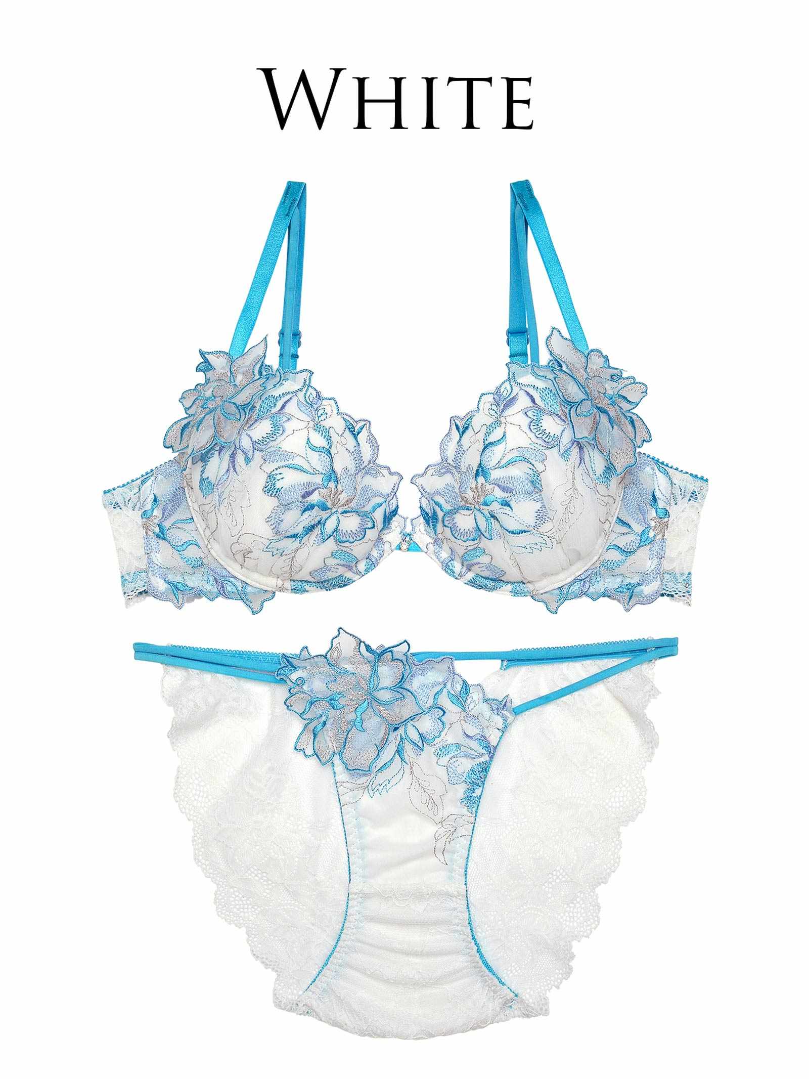 【Reinest】グラマーペタルエンブロイダリーブラジャー&バック透けフルバックショーツ