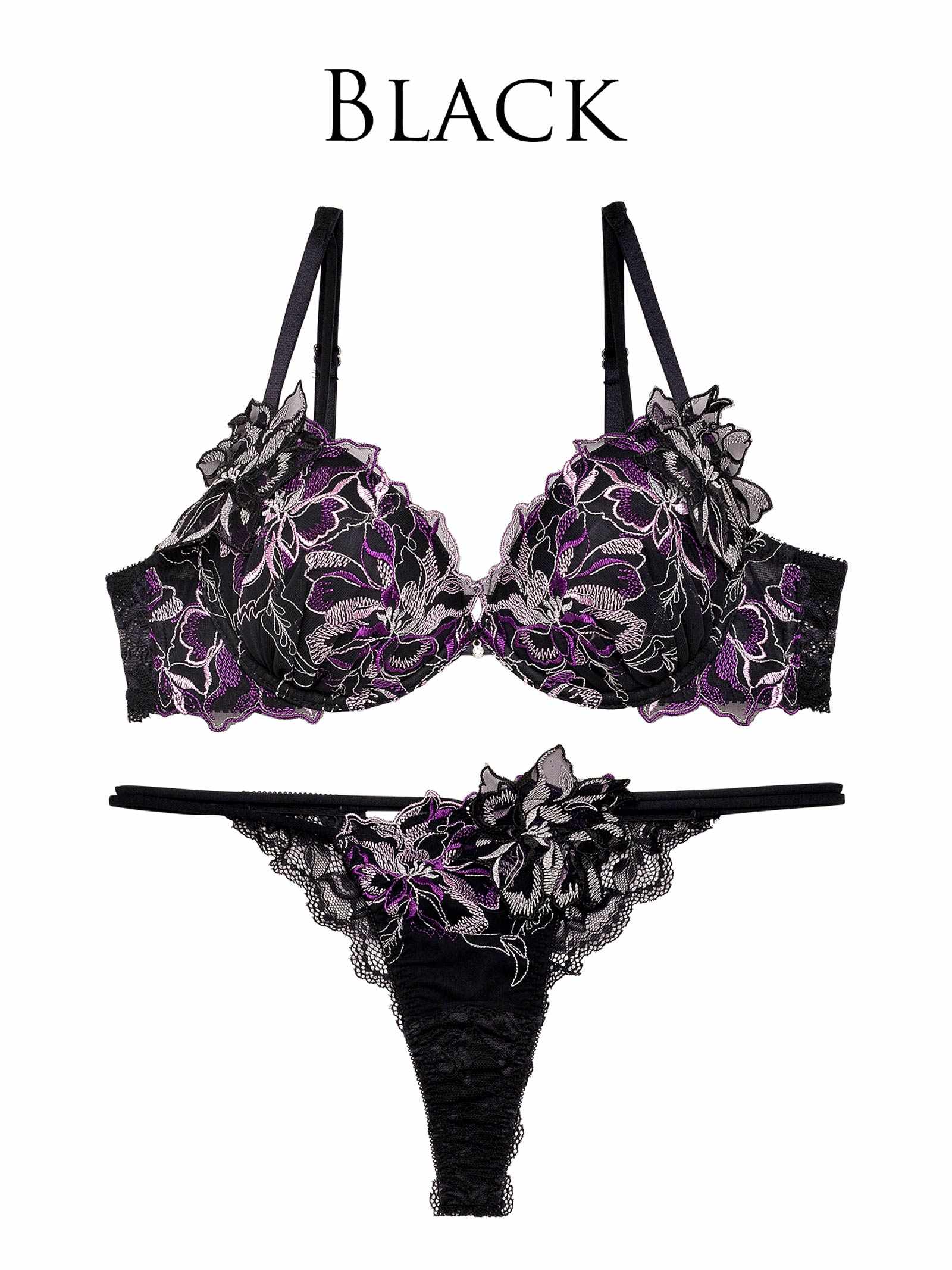 【Reinest】グラマーペタルエンブロイダリーブラジャー&バック透けTバックショーツ