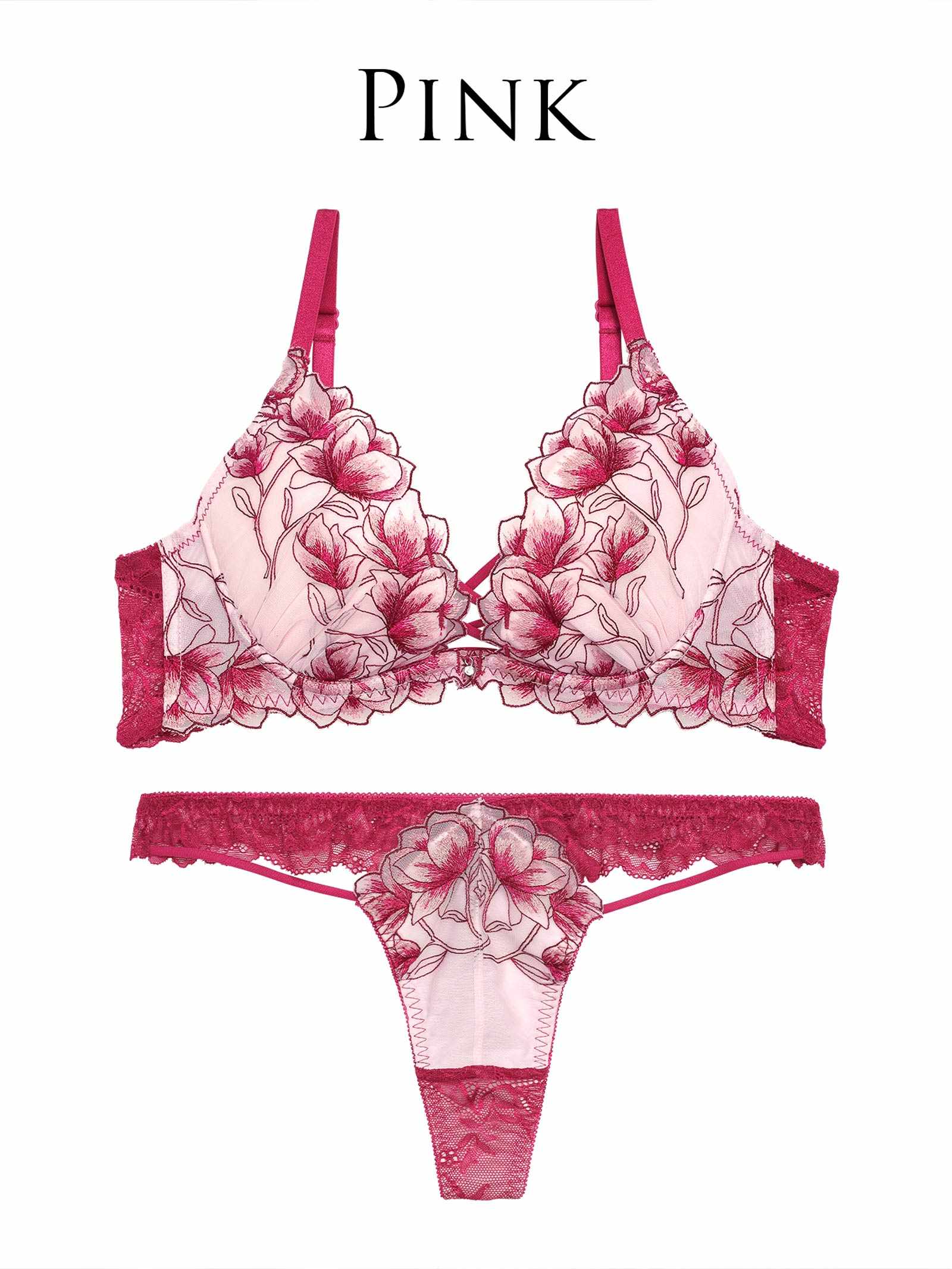 【永尾まりや着用】【Reinest】ラグジュアリーブライトペタルブラジャー&バック透けTバックショーツ