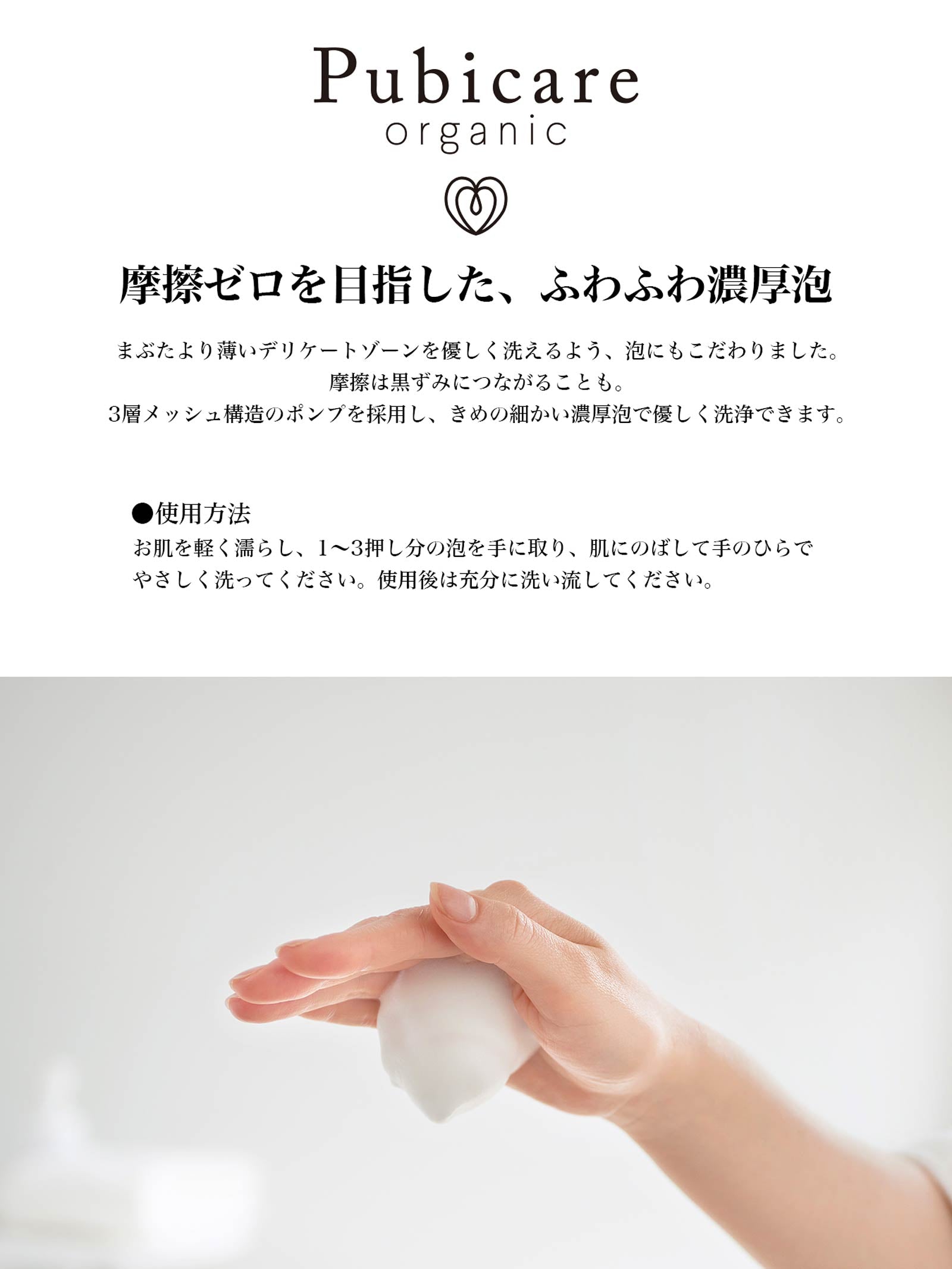 濃密なクッション泡を作るポンプと丸みのあるボトルを採用しました。泡のキメの細かさをアップさせ、フェムゾーンの細部をやさしく包み込み、しっかり汚れを落とします。
